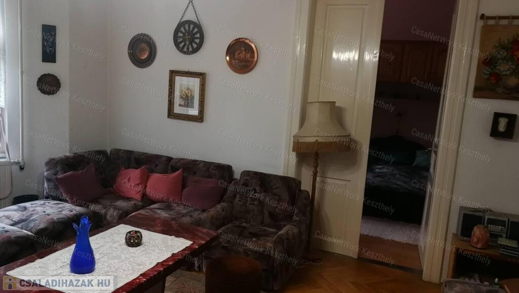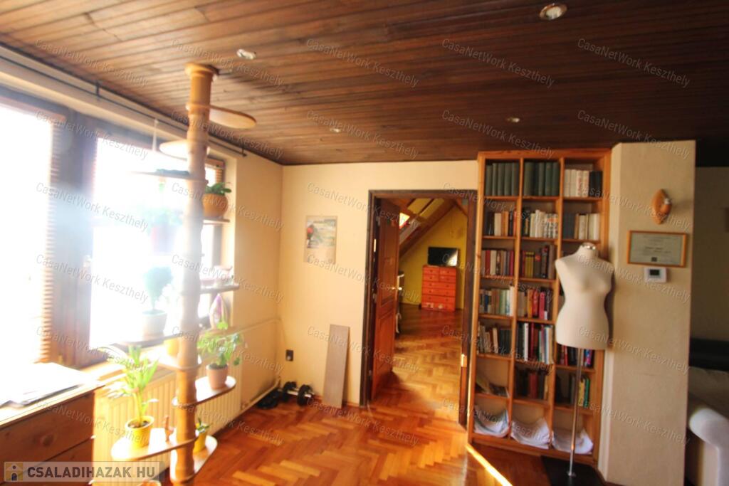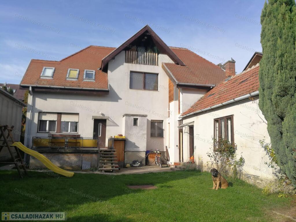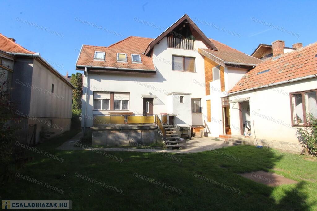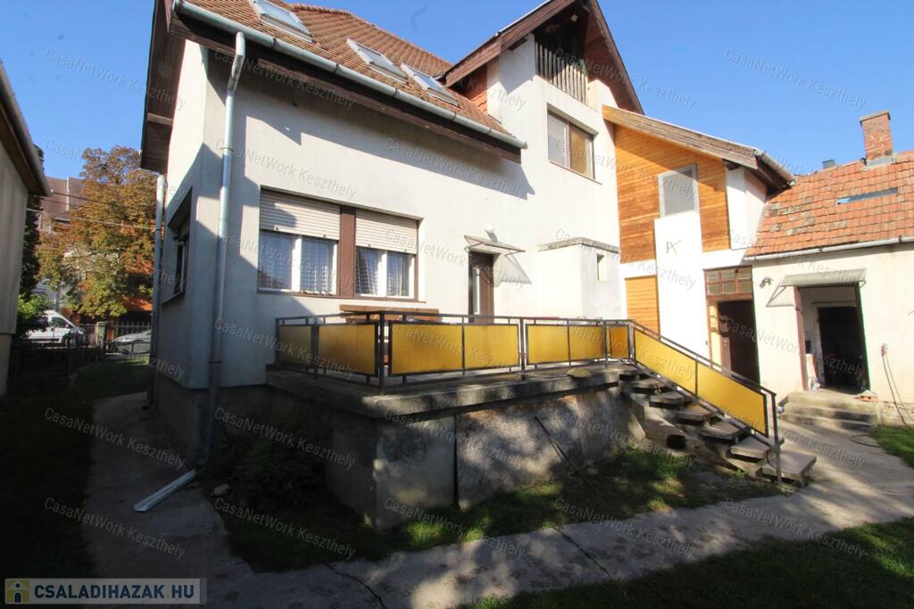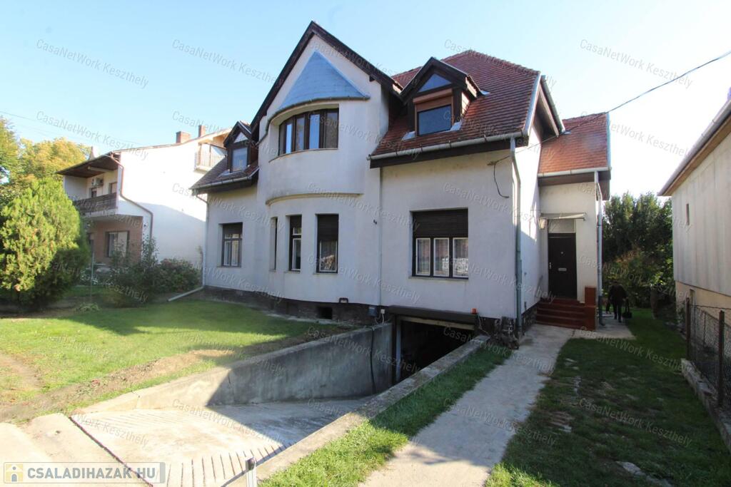 Kiváló elhelyezkedéssel, Keszthely belvárosában eladó egy nagypolgári jellegű, kétszintes, kétlakásos családi ház, 772 m² telken, garázzsal, hátsó gondozott kerttel.
