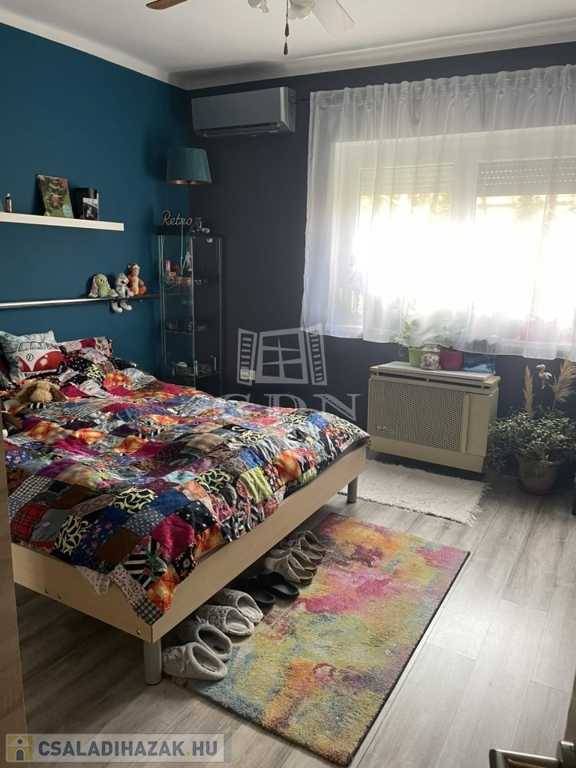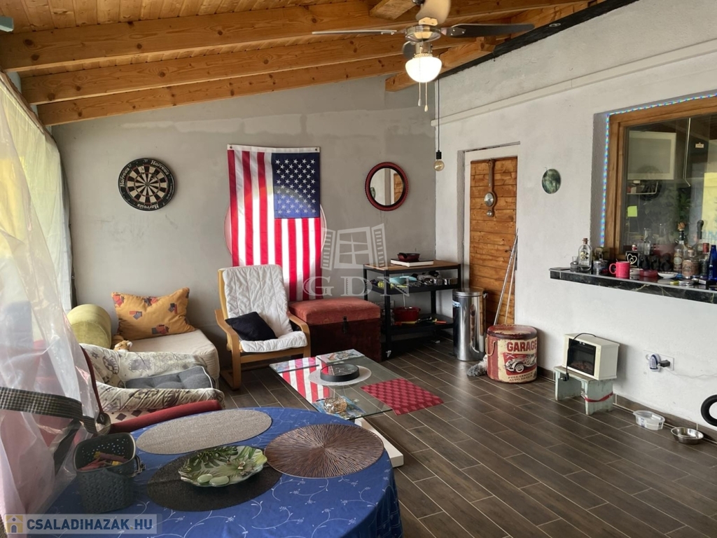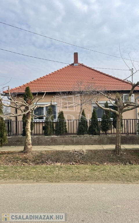 A 2072 m2-es, gondozott, összközműves telken elhelyezkedő 104 m2-es ingatlanban 2 szoba, folyosó, amerikai konyhás nappali, fürdőszoba, különálló illemhely és spájz is található.