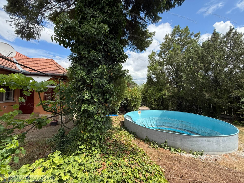 Az ingatlan egy 1200 m²-es, teljesen körbekerített telken helyezkedik el, igényesen kialakított pihenőkerttel és gazdasági funkciókat is kiszolgáló melléképületekkel. Az udvar rendezett, dísznövényekkel, gyümölcsfákkal, valamint egy 25 köbméteres (1,5 m mély és 5 m átmérőjű), vízforgatós medencével (karbantartást igényel) gazdagított. A kényelmet tovább fokozza a külön nyári konyha és tárolóhelyiség is.