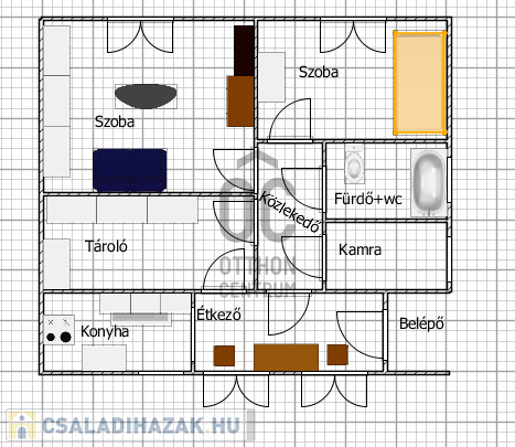 56 négyzetméteres alapterületén gyakorlatilag minden helyiség biztosított, ami elengedhetetlen egy család életéhez.