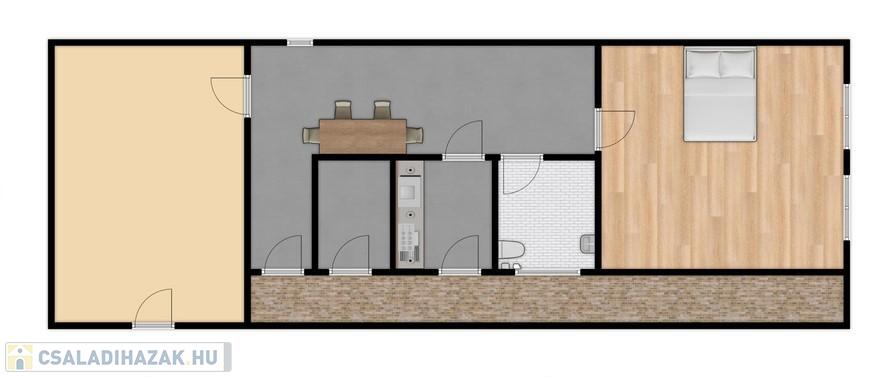 1 tágas hálószoba (plusz egy hálószoba könnyen kialakítható a 26,46 m²-es tárolóból)
