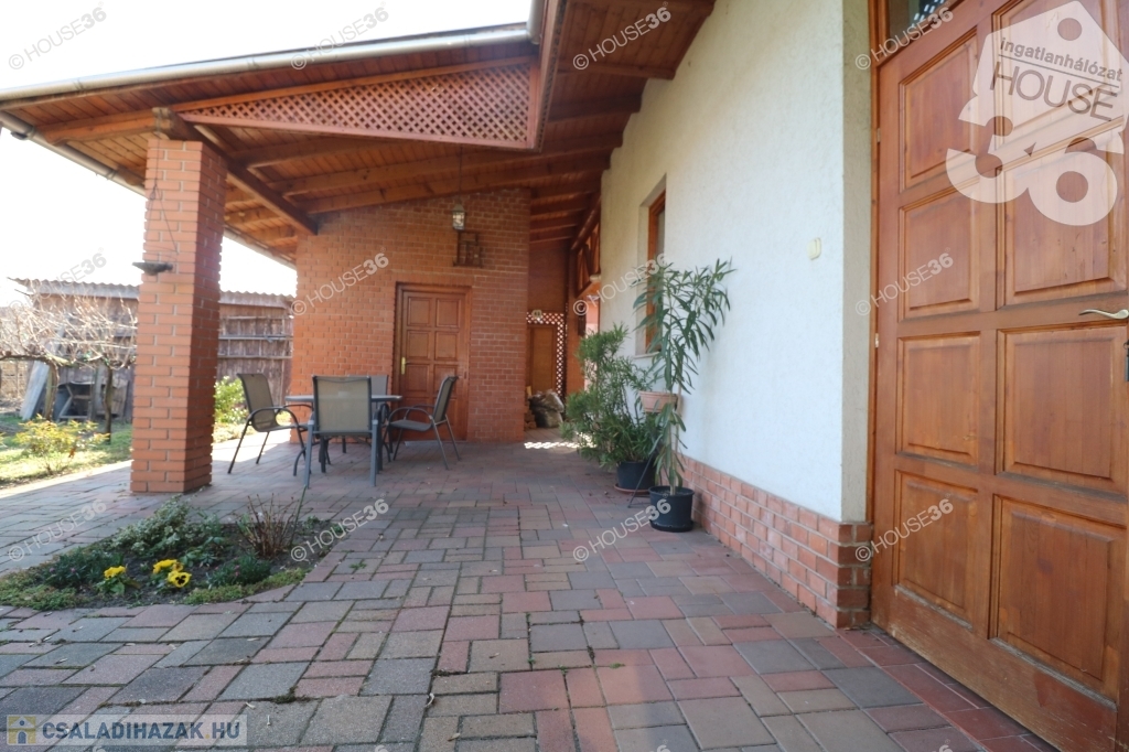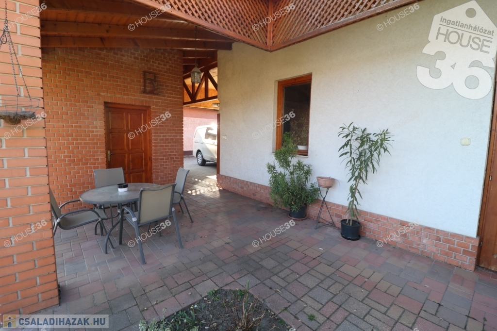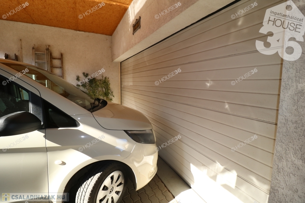 - Terasz, fedett kocsibeálló, dupla garázs, térkövezett kocsibeálló, elektromos garázsajtó, elektromos kapu, fúrt kút, kert, nyári konyha, szaletli stb.