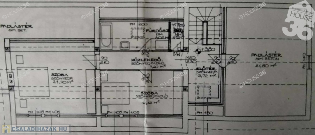 - 175 m2-es lakóterület, 5 szoba, két fürdőszoba (lakótér bővítési lehetőség adott).