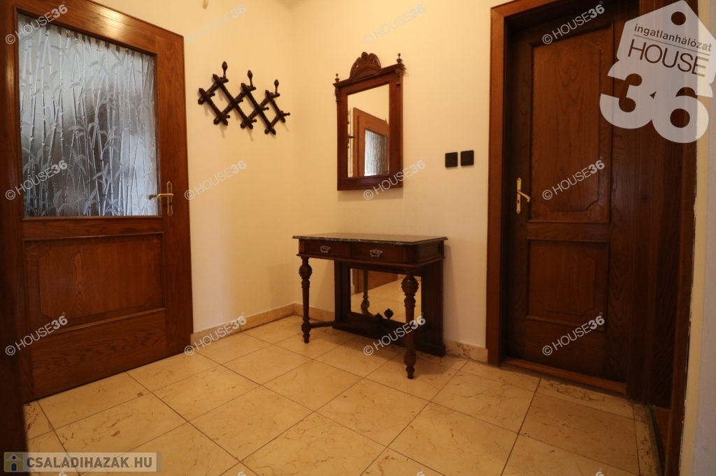Fa nyílászárók, gázkazánról üzemeltetett padlófűtésrendszer, cserépkályha, részben márvány burkolatok, bővítési lehetőségek.