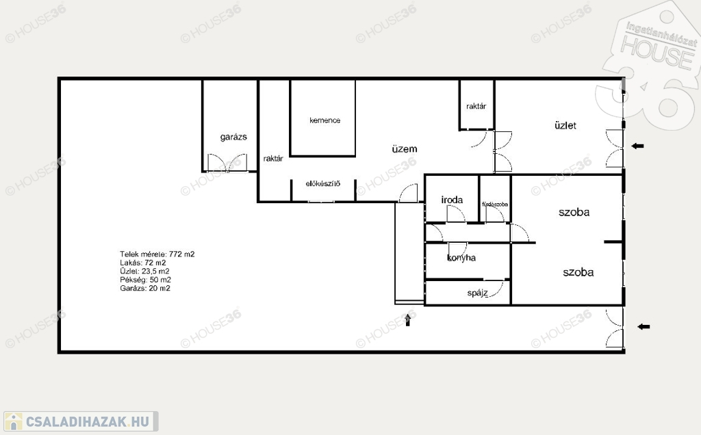 - Pékség: 50 m2 (2 raktár, előkészítő, sütőkemencés helység)