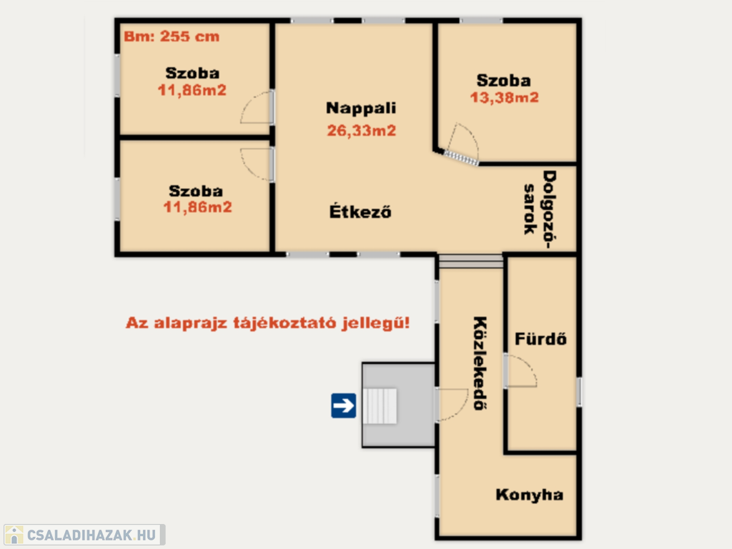 A házban három kényelmes szoba, tágas nappali-étkező, konyha, fürdőszoba, praktikus dolgozósarok és közlekedő található. Az épület alatt egy 23 m2-es pince helyezkedik el, amely kiváló tárolási lehetőséget biztosít.
