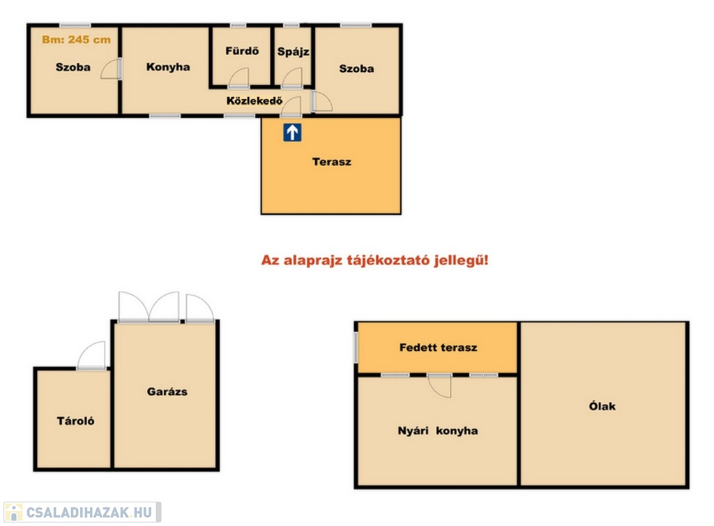 - Melléképület: garázs, nyári konyha, tároló, ólak