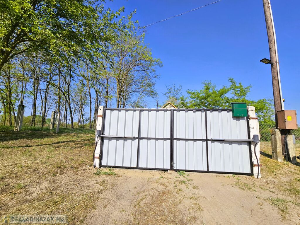 - Terület szövött dróttal bekerített, elektromos kapuval felszerelt.