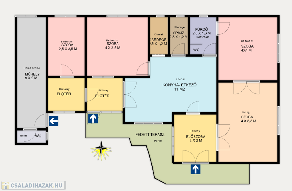 - Szoba 4 db (22 m2, 18 m2, 14 m2, 9 m2)