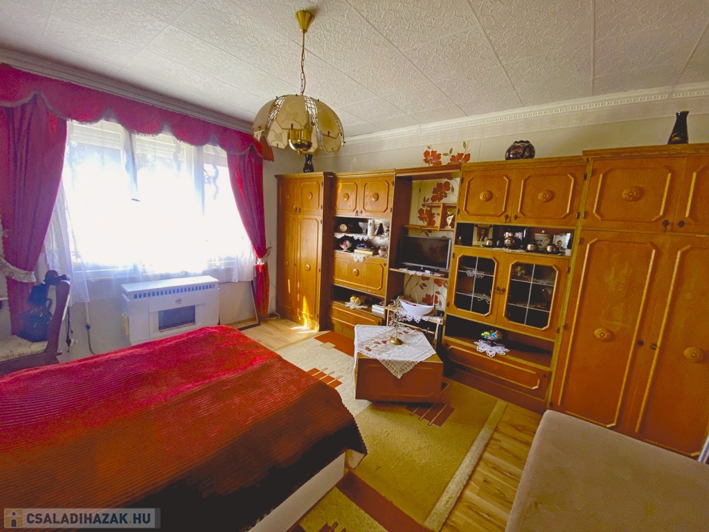 Kiskunhalas Felsőváros részén 420 m2 telekterületen találjuk a 71 m2 lakóterületű családi házat. A folyamatosan karbantartott ingatlanban kialakításra került 2 szoba, nappali, konyha, fürdő + WC, spájz, előtér. Konvektorok és egy cserépkályha biztosítja a fűtést.