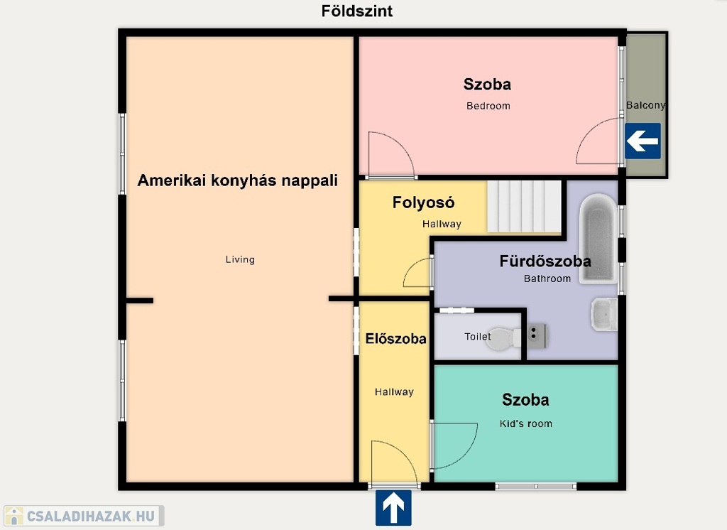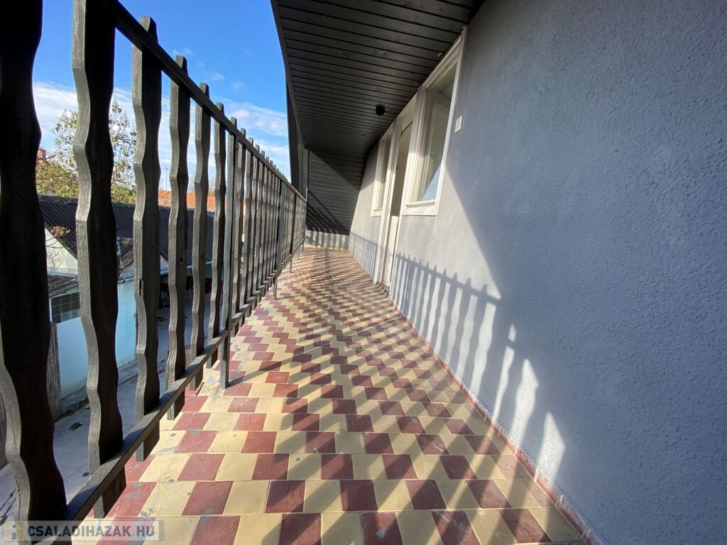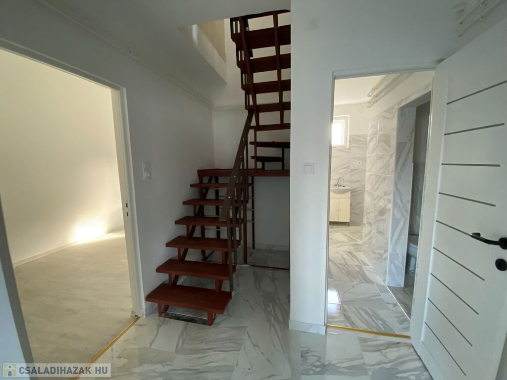 Az ingatlan földszintjén 2 szoba, amerikai konyhás nappali, fürdőszoba káddal, egy különálló wc, az épület elején és belső udvari részén fedett terasz található. Az emeleten 2 szoba, nappali, fürdőszoba zuhanyzóval és egy wc kapott helyet.
