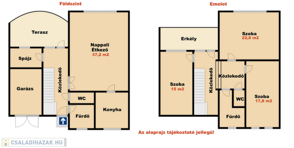- Szobák: nappali 37m2+ 3 (22,8m2 +15m2 + 17,8m2)