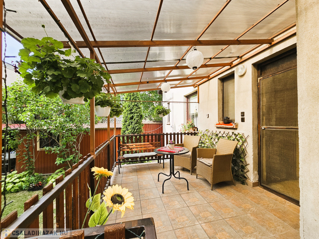 A rendezett virágos, parkosított udvar és a fedett terasz kellemes kikapcsolódást és szép kilátást nyújt. Az ingatlan kiváló választás nagyobb családoknak, akik tágas, kényelmes otthont keresnek a belvárosvárosban.