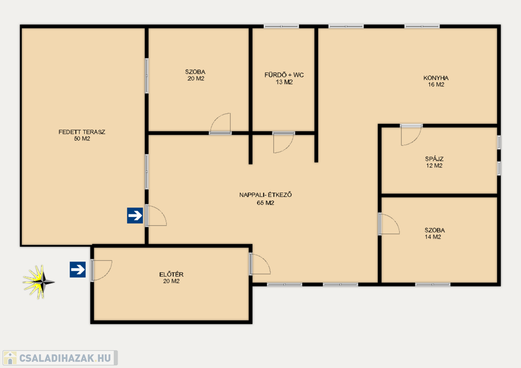 - A beton alappal, tégla falazattal épült ingatlan földszintjén kialakításra került 2 háló szoba, egy nappali étkezővel, nagy konyha étkezővel és spájzal, nagy-tágas fürdőszoba wc-vel, 20 m2-es beüvegezett előtér, és egy 50 m2-es fedett terasz.
