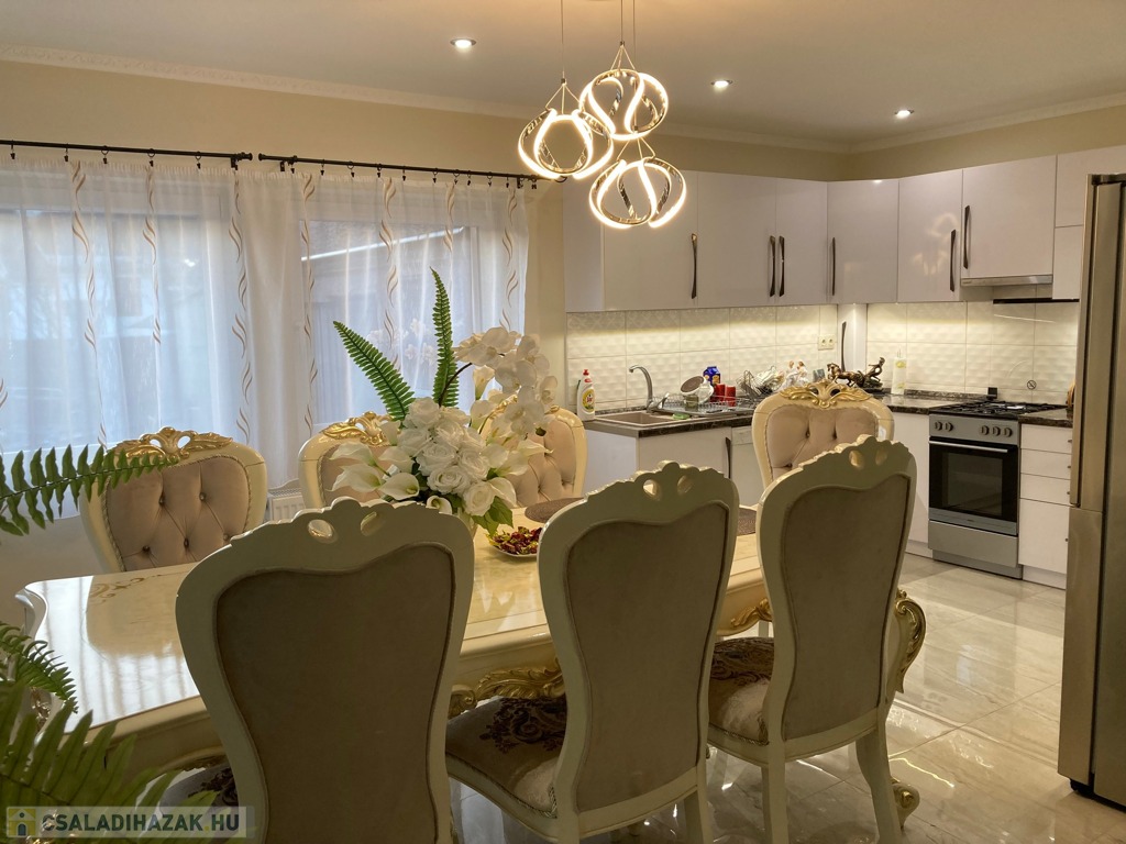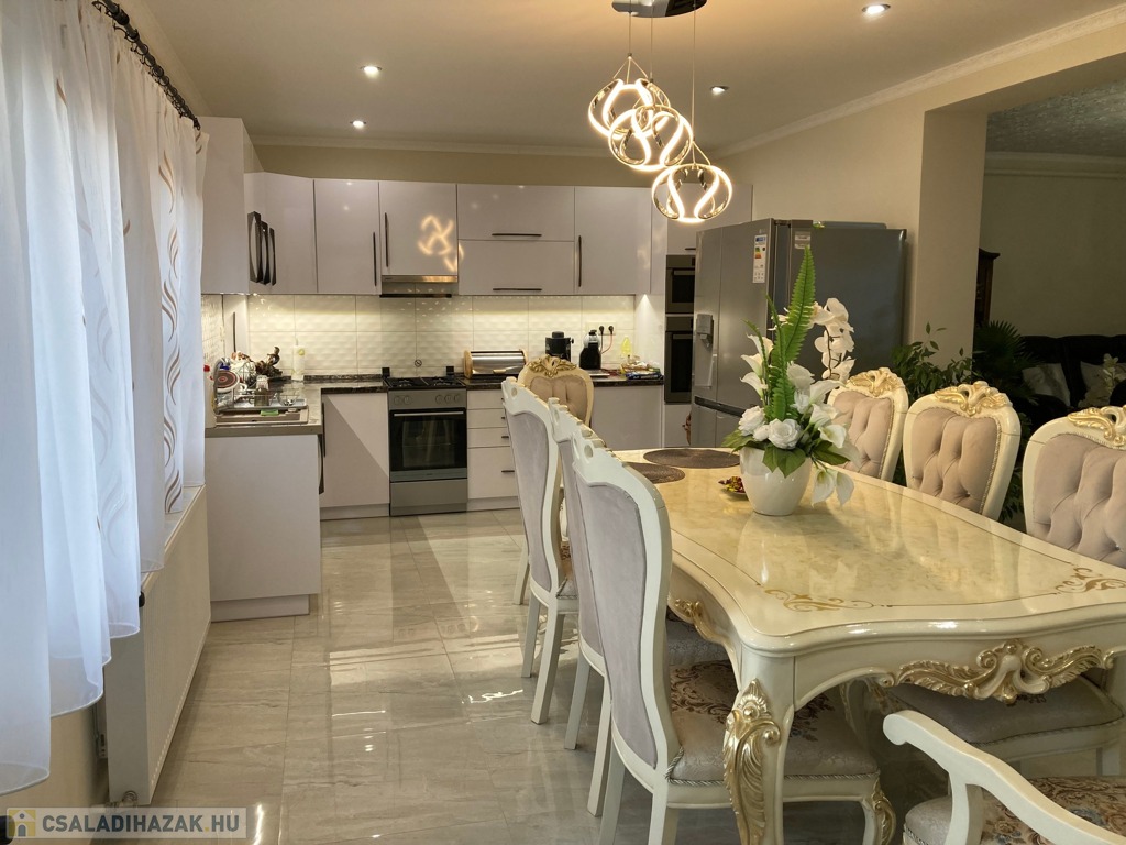 Kiskunhalas a Fazekas Mihály ált. iskola közelében eladó igényes családi ház 465 m2-es telekterületen, 220 m2 lakóterületű, 4 szoba, nagy, világos 40 m2-es amerikai konyhás nappali, 2 fürdőszoba kialakításával.