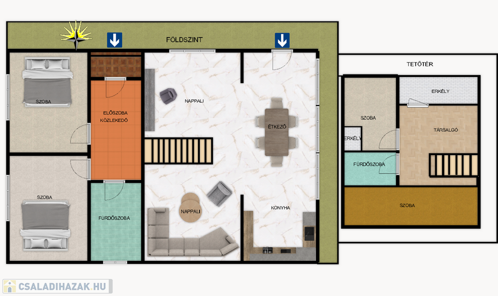 - Szobák: 2 a fsz.-en, 2 az emeleten
