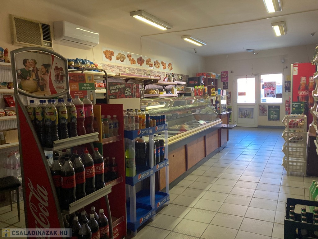 - Élelmiszer üzlet + raktárak, öltözők – 100 m2