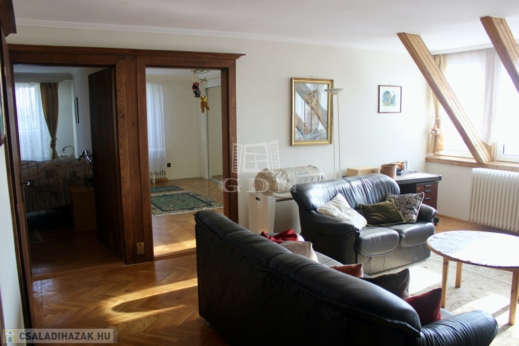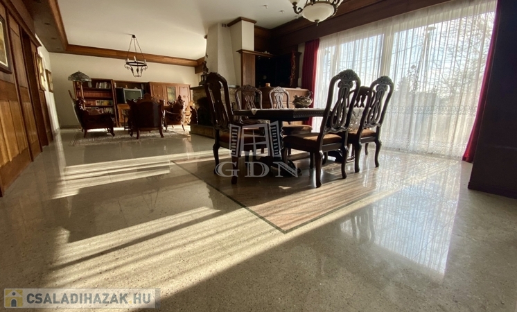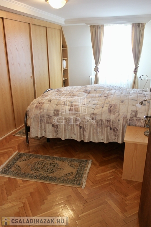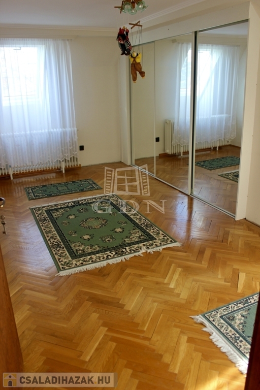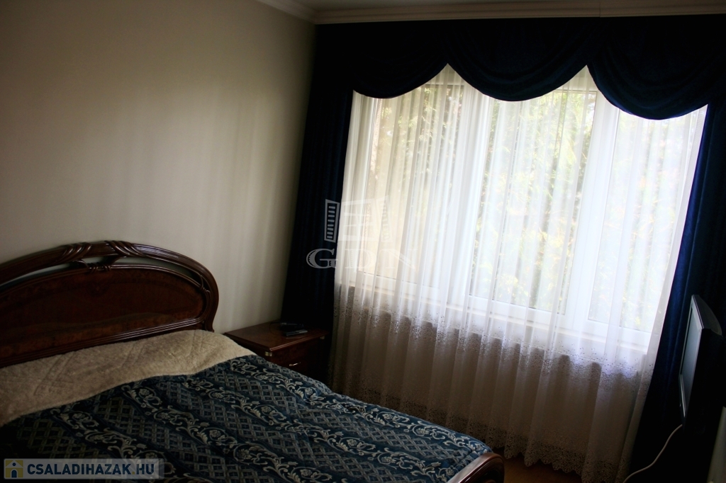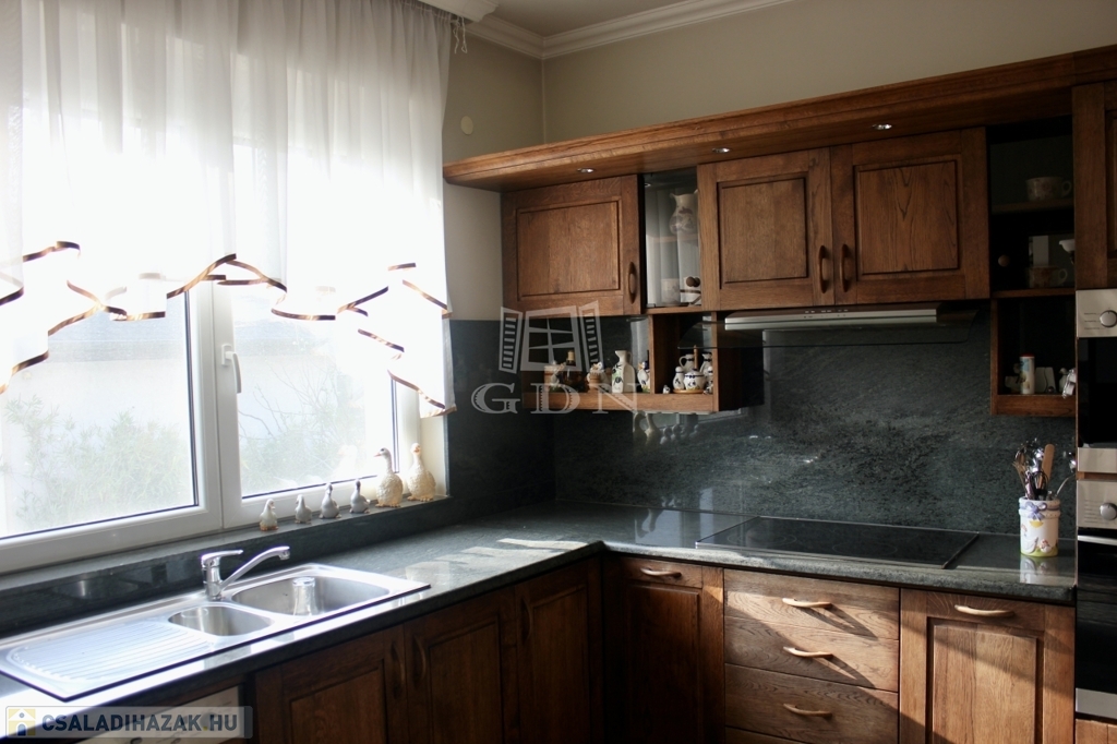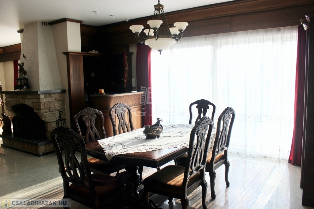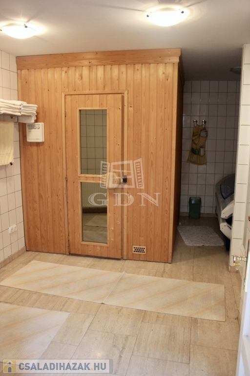 A háromszintes, igényesen megépített és folyamatosan karbantartott ház kialakítása rendkívül praktikus. A földszinten található egy előtér, WC, kamra/tárolóhelyiség, konyha, melyben beépített Miele gépek találhatóak, ezen felül egy étkezővel egybekötött nappali, egy gardrób szoba, fürdőszoba illetve egy hálószoba. Az emeleti lakótérben szintén megtalálható egy nappali rész, két hálószobával egy fürdőszobával és két beépíthető tetőtéri szobával. A szuterén szinten található a műhely, mosókonyha, egy világos télikert, fitness terem, zuhanyzó és külön WC, valamint egy gondosan kialakított wellness részleg szaunával. A ház szobáiból és a teraszról egyaránt szép kilátás nyílik a kertre, amely kellemes, zöld környezetet biztosít a mindennapokhoz.