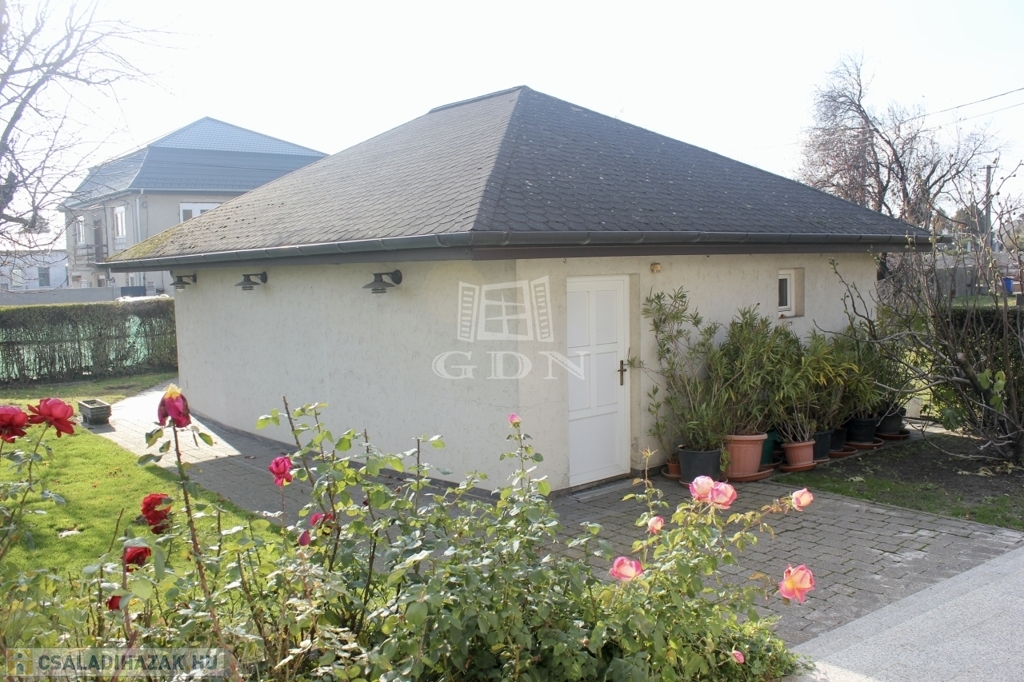 Az ingatlan fűtését gáz cirkó berendezés és padlófűtés biztosítja, a tisztán tartást központi porszívó segíti. A 3 légkamrás műanyag nyílászárók elektromos redőnyökkel felszereltek, a meleg vízről gázkazán és puffertartály gondoskodik. A parkosított kert ápoltságát automata öntözőrendszer biztosítja, a parkolás pedig egy kétállásos, Hörmann elektromos kapuval és riasztóval felszerelt garázsban megoldott.
