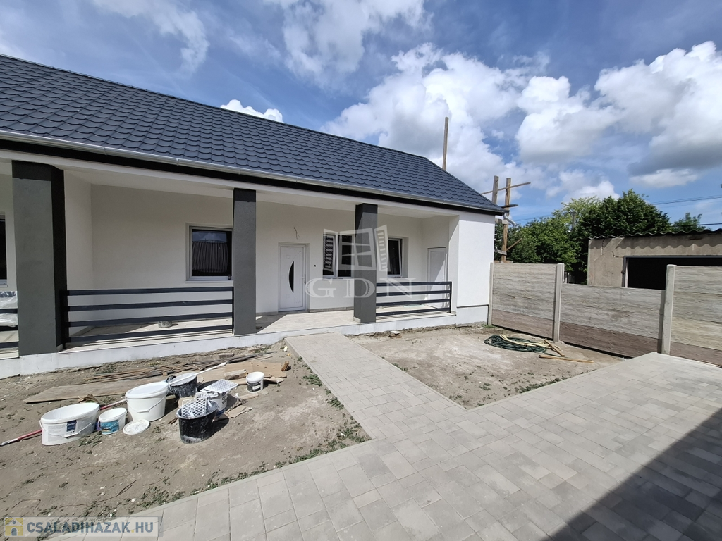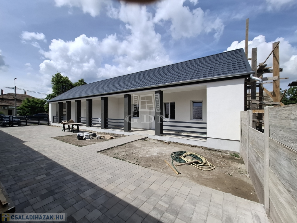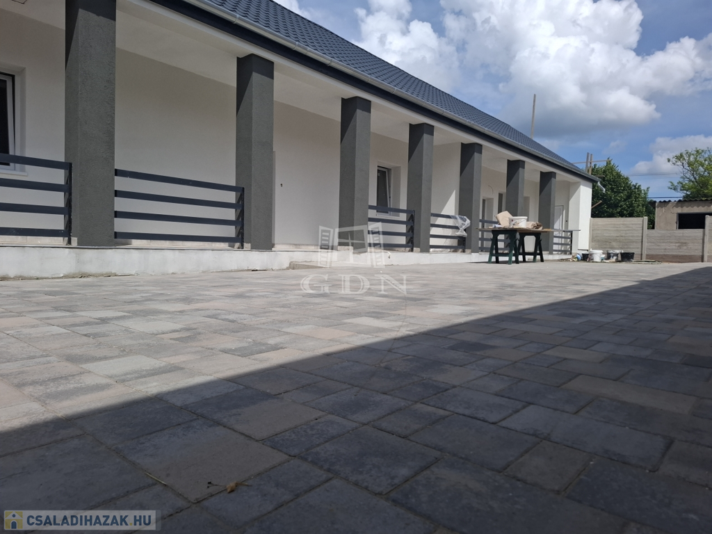 Teljes körűen felújított ikerházfél Kiskunlacháza központjában, saját udvarral, térkövezett kocsibeállóval és fedett terasszal!