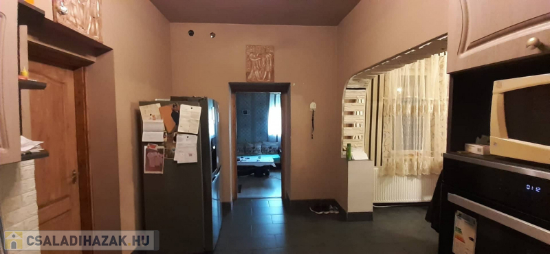 A főépületben találunk egy kis előszobát, egy fogadórészt, mely kisebb nappaliként is funkcionál, egy L alakú konyha-nappalit, mely boltívvel van elválasztva, két nagyobb szobát, és egy kisebbet, valamint egy fürdőszobát, melynek a mennyezete még befejezésre vár. Ez a lakrész kb.107 nm területű, 2017-ben teljes felújításon vett részt.