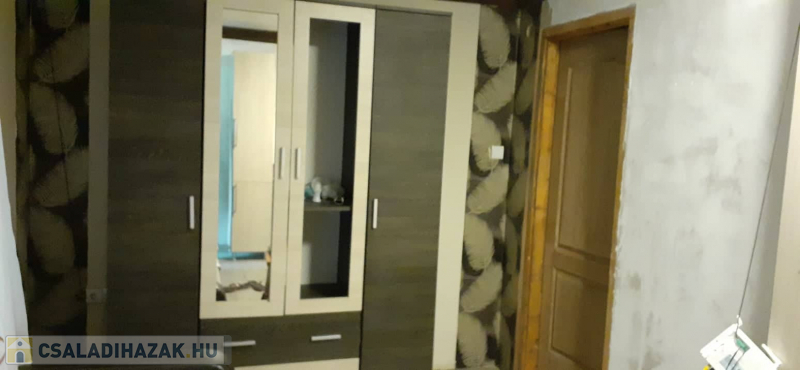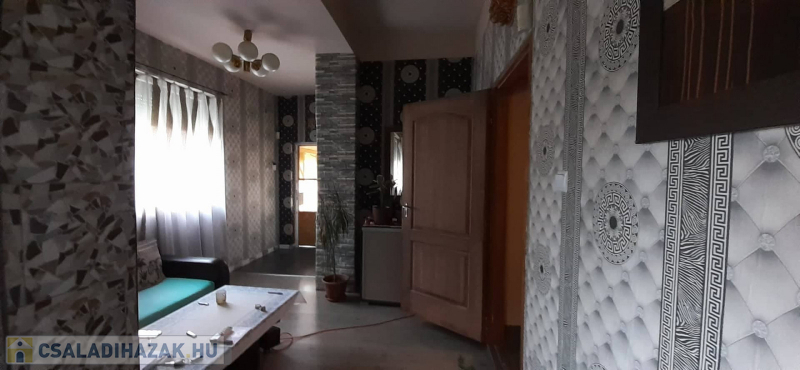 A hátsó lakrész( 49nm) egybe van építve a fő résszel, de teljesen külön bejárattal rendelkezik. Ott találunk egy hosszú folyosót, innen nyílik egy 18 nm-es konyha-nappali, és egy 14 nm-es szoba. A nappaliból jutunk a 4 nm-es fürdőszobába. A folyosóról nyílik az egész épület alatt húzódó pince. Ez a lakrész, bár laknak benne, de a fürdőn kívül még befejezésre vár.