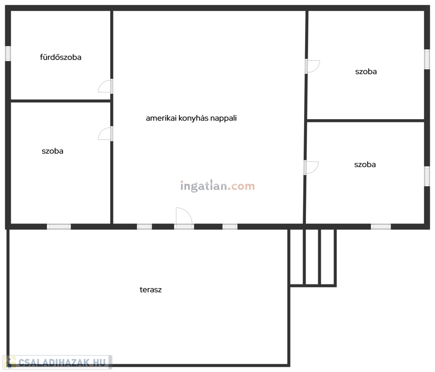 A házban 3 szoba és egy amerikai konyhának kialakítható nappali található.