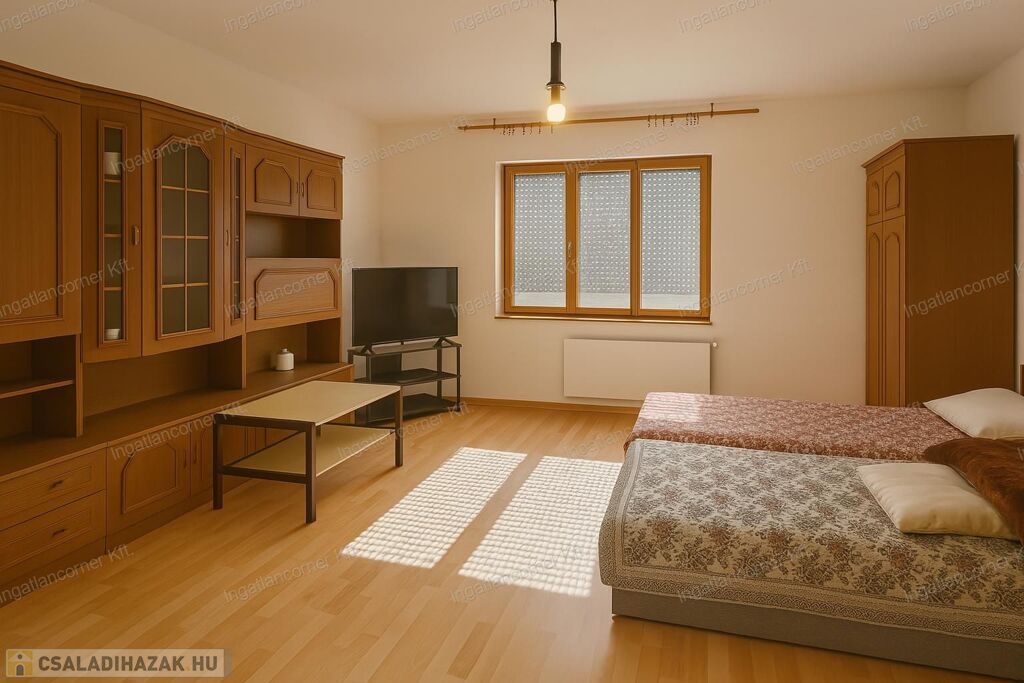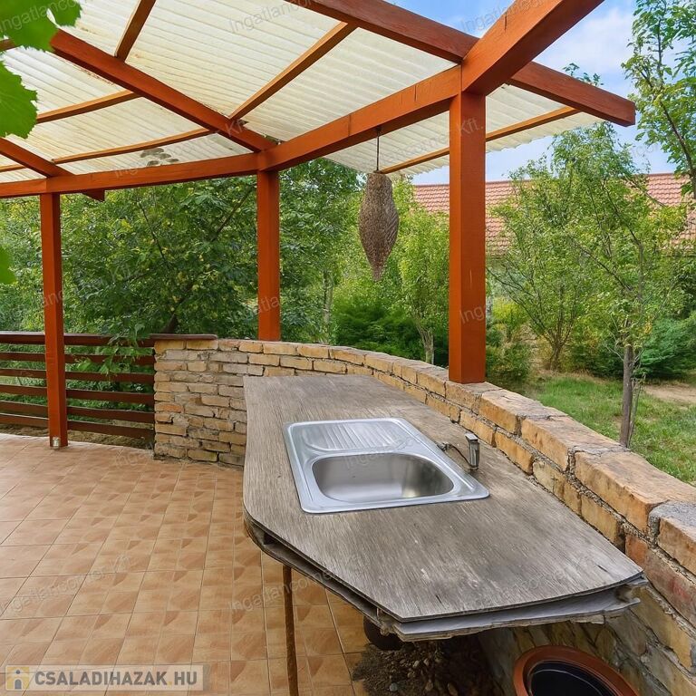 A belső tér praktikus és világos: 31 m²-es amerikai konyhás nappali, két hálószoba, valamint bővítési lehetőség. A kert rendezett, fúrt kúttal, termő gyümölcsfákkal és szőlőlugasokkal, így ideális választás lehet kertészkedéshez, gazdálkodáshoz, vagy akár vállalkozási célokra is.