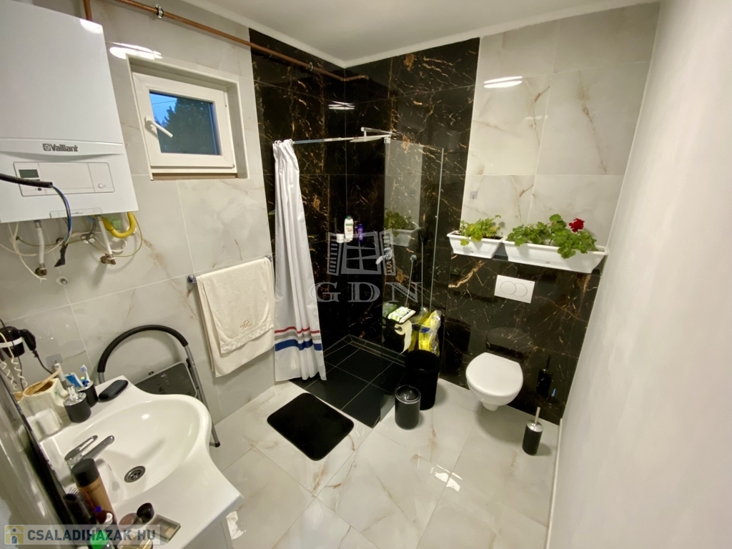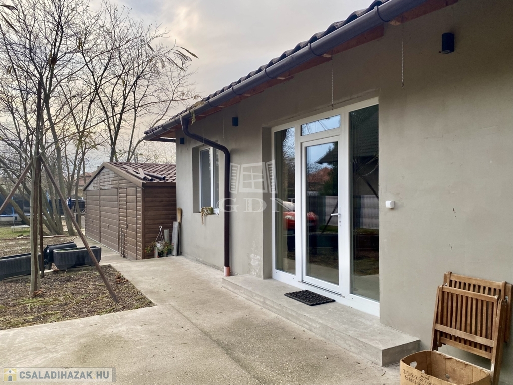 A hátsó, 49,3 m²-es épület teljeskörűen felújított, modern kialakítású. Ytong falazata kívül 10 cm hőszigetelést kapott, a tetőn pedig 30 cm szigetelés gondoskodik a kiváló energiahatékonyságról. A kényelmet padlófűtés és klímával történő fűtési lehetőség biztosítja, így a rezsiköltségek rendkívül kedvezőek lehetnek.