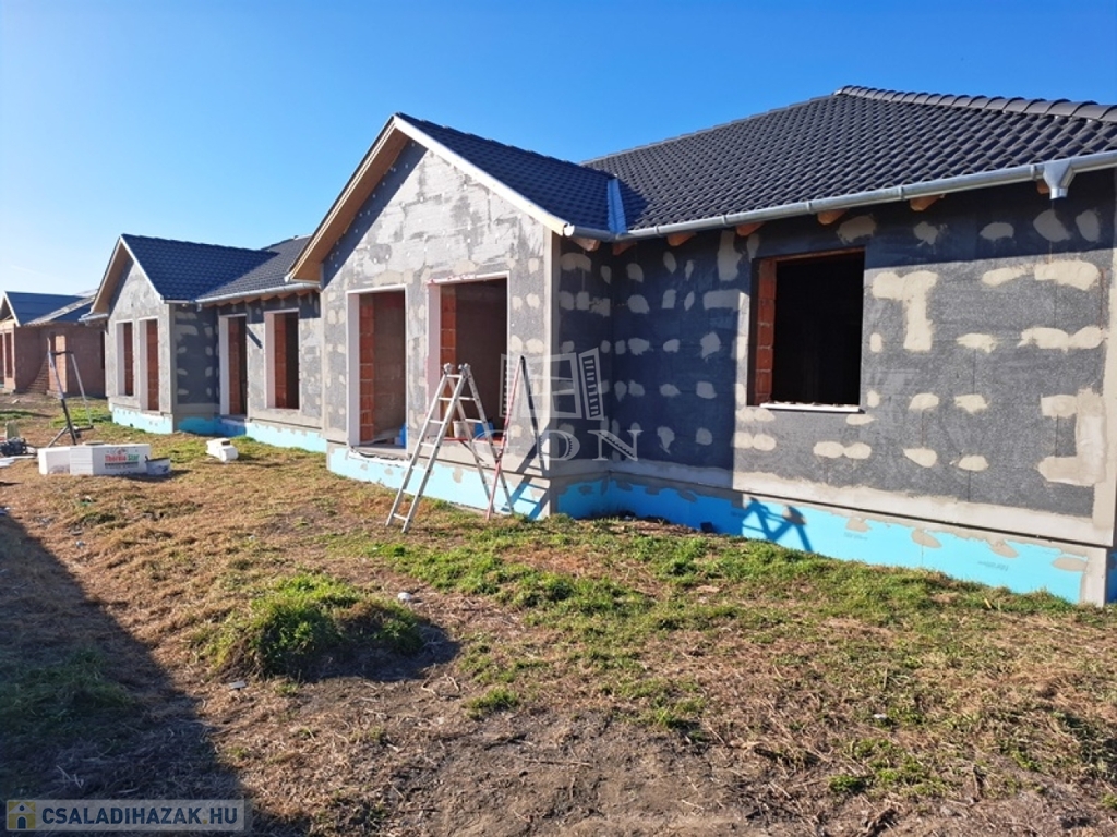 Új építésű házak szomszédságában kínálom megvételre, egy három lakásos sorház "A" lakását nettó 90,04 nm lakótérrel, 330,47 nm saját kerttel.