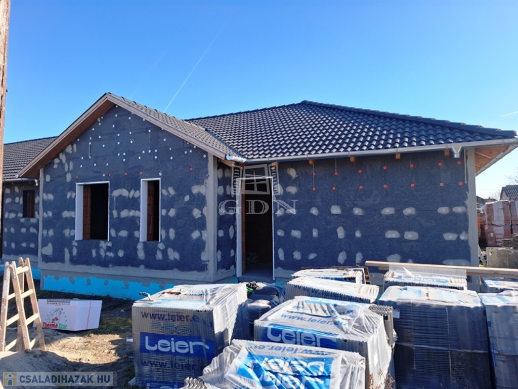 A ház beton alapra, 30-as Porotherm téglából, fa födémmel, Bramac antracit színű betoncserép fedéssel épül meg.
