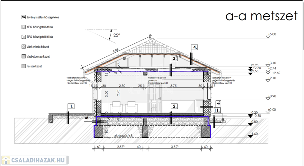- 30 cm Porotherm téglából épült, mely 15 cm-s grafitos szigetelést kap