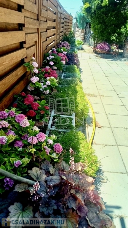 Az ingatlan egy 478 m²-es, gondozott telken helyezkedik el, nyugodt lakókörnyezetben.