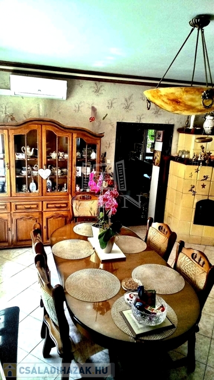 Fűtés: gázkazán, 5 éves vegyes tüzelésű kazán, cserépkályha, hűtő-fűtő klíma