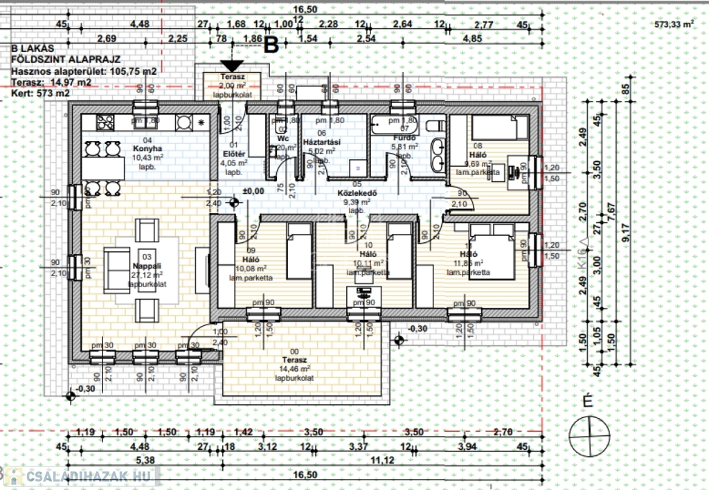 Hátsó "B" családi ház 573 m2 kert, 105,75 m2 lakótér ára:78.750.000 ft
