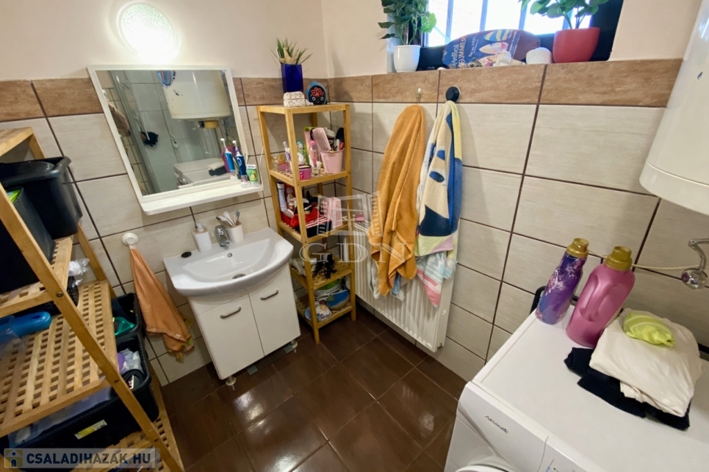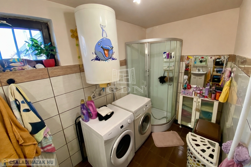 A 143 négyzetméteres lakóterület egy 311 négyzetméteres, rendezett telken helyezkedik el, amely elegendő teret biztosít pihenéshez, kertészkedéshez vagy akár családi programokhoz is. Az ingatlan belső elrendezése átgondolt és praktikus: a földszinten egy tágas nappali, konyha, étkező, kamra, fürdőszoba, valamint külön WC kapott helyet, míg a tetőtérben három és fél szoba, valamint egy fürdőszoba WC-vel került kialakításra. A ház így kényelmes életteret nyújt akár nagyobb családok számára is.