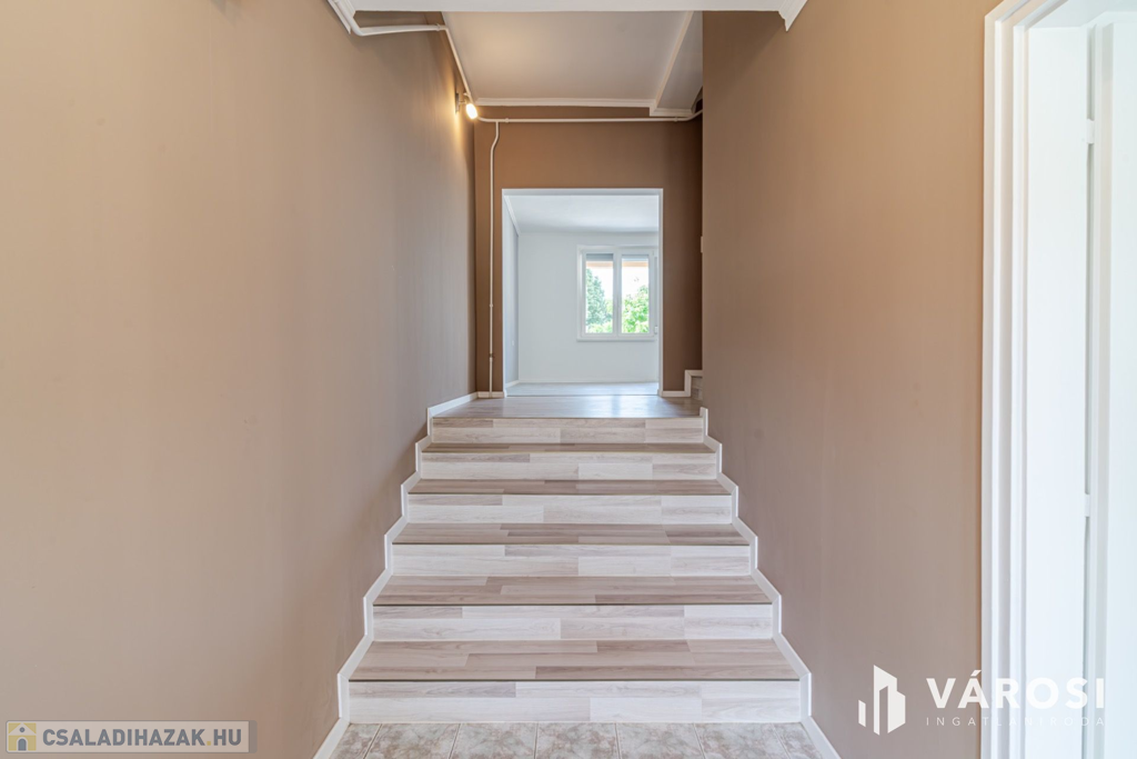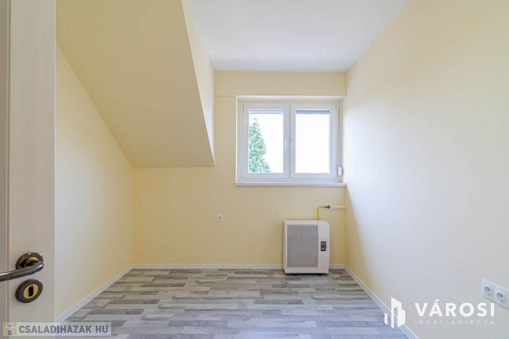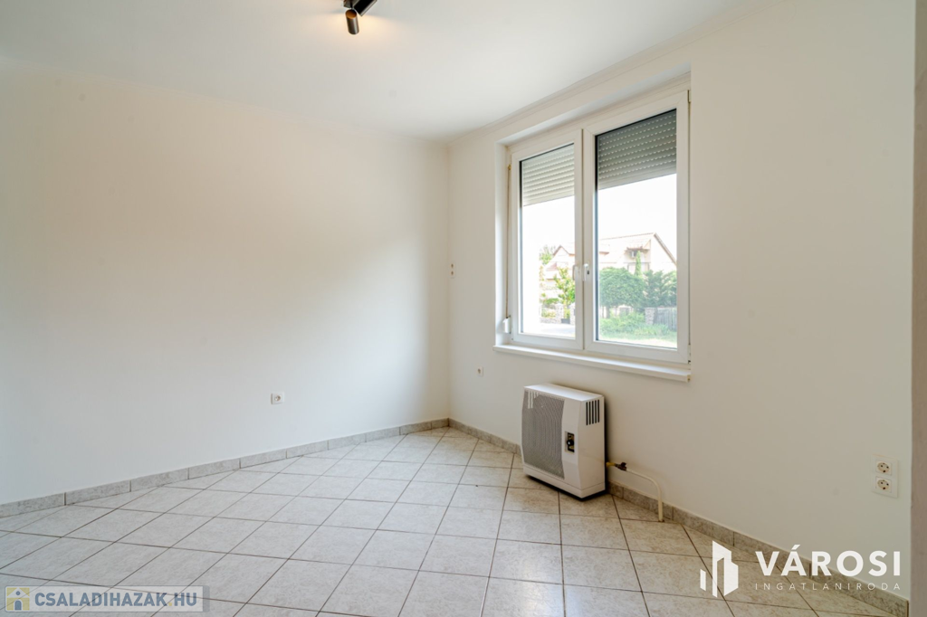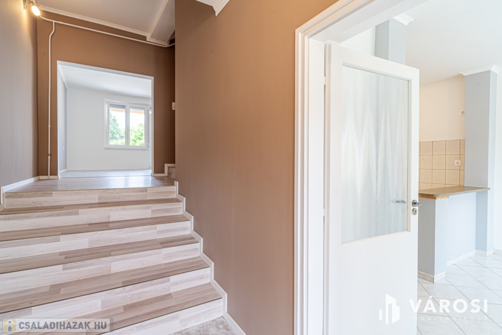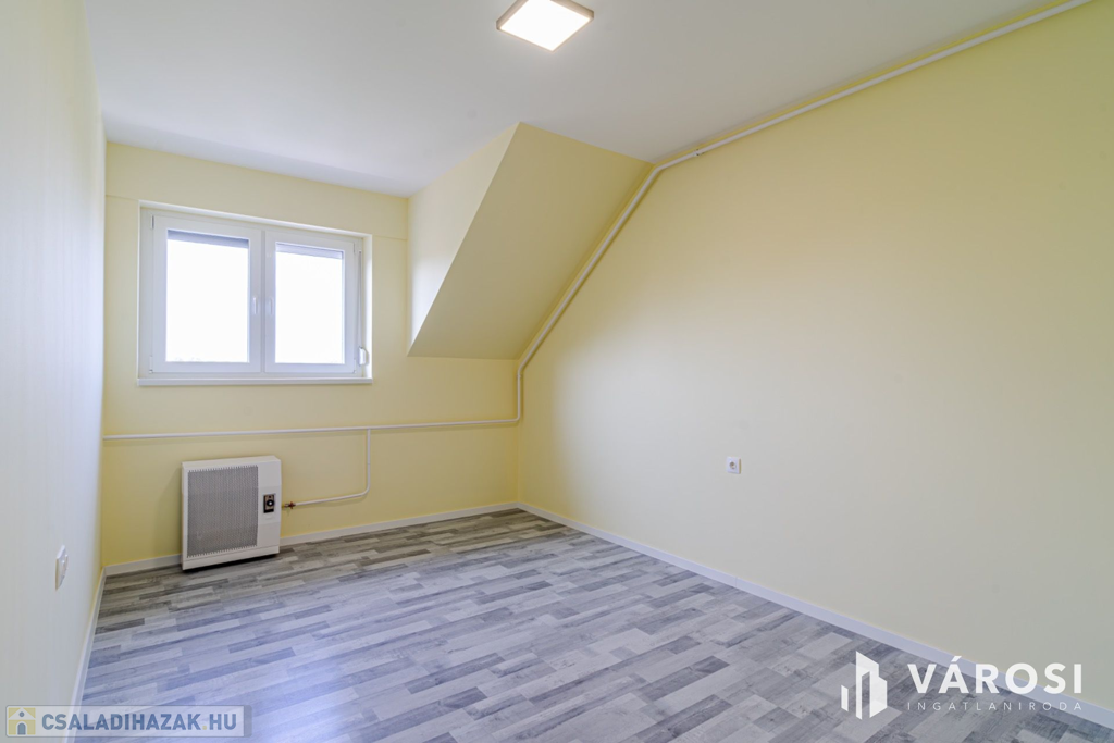 A ház 1 db nappalival, 5 db hálószobával, 3 db fürdőszobával, konyha étkezővel közlekedőkkel terasszal, és dupla garázzsal rendelkezik. Az ingatlan elhelyezkedésre (sportpálya, 2 háztömbnyire a belváros, valamint a fürdő is 8 percre), kialakítása miatt, maximálisan kiemeli ezt az ingatlant az átlagos sorházak sorából és egyedülálló választássá teszi azt. További előny, hogy az eladó 2020-ban sok elemében felújította az ingatlan, kicserélte a teljes tetőt (új gerendák, új fóliázást, és új cserepek, és új esővíz elvezetés), felújította a fürdőt, kicserélte az összes nyílászárót - szúnyoghálóval és rolóval is ellátta - , a szobákban és teraszon is új burkolatokat rakott le, illetve a ház homlokzatát új 15 cm - es szigeteléssel látta le, valamint a konyha kapott egy új konyhabútor is. Legutolsó esztétikai felújítása az ingatlannak 2024-ben volt.