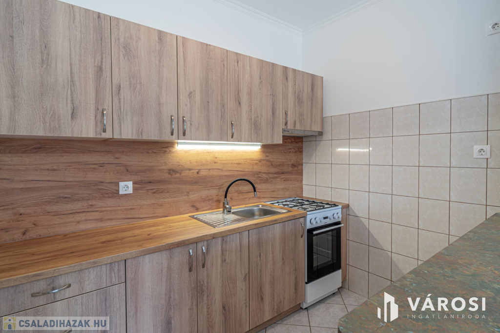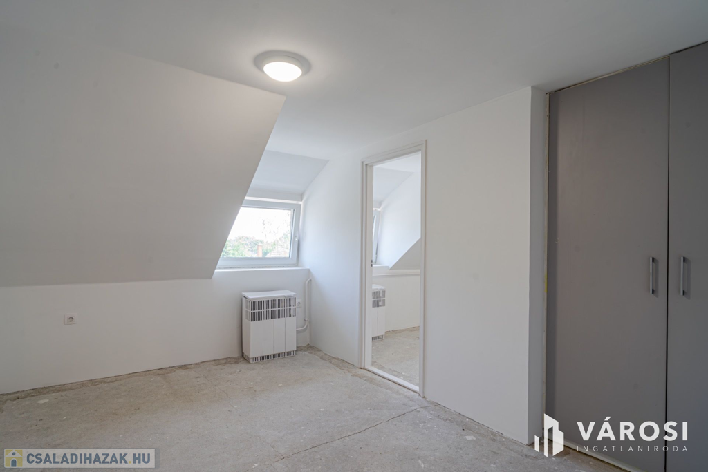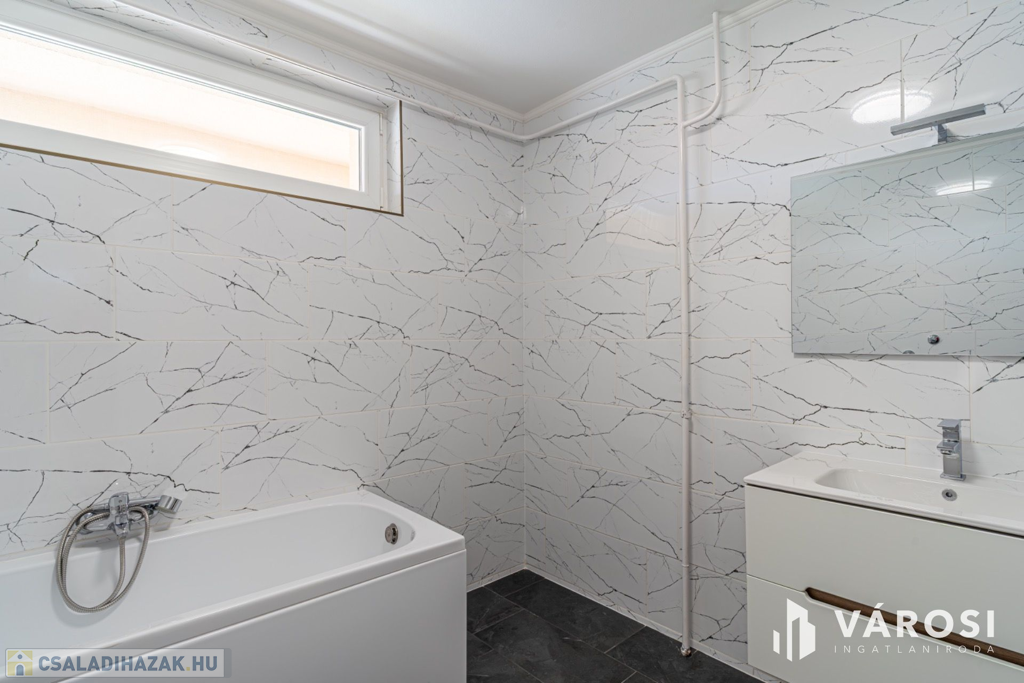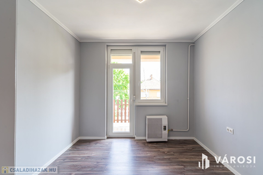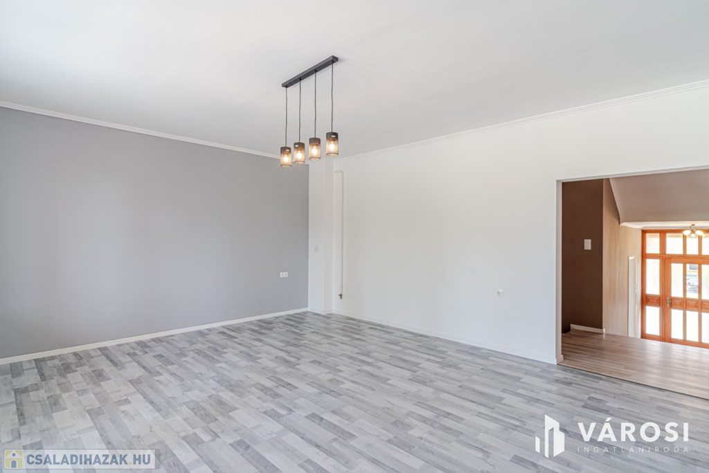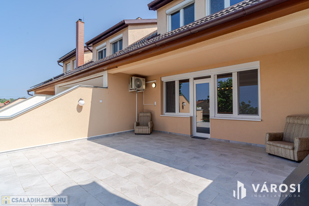 A ház 1 db nappalival, 5 db hálószobával, 3 db fürdőszobával, konyha étkezővel közlekedőkkel terasszal, és dupla garázzsal rendelkezik. Az ingatlan elhelyezkedésre (sportpálya, 2 háztömbnyire a belváros, valamint a fürdő is 8 percre), kialakítása miatt, maximálisan kiemeli ezt az ingatlant az átlagos sorházak sorából és egyedülálló választássá teszi azt. További előny, hogy az eladó 2020-ban sok elemében felújította az ingatlan, kicserélte a teljes tetőt (új gerendák, új fóliázást, és új cserepek, és új esővíz elvezetés), felújította a fürdőt, kicserélte az összes nyílászárót - szúnyoghálóval és rolóval is ellátta - , a szobákban és teraszon is új burkolatokat rakott le, illetve a ház homlokzatát új 15 cm - es szigeteléssel látta le, valamint a konyha kapott egy új konyhabútor is. Legutolsó esztétikai felújítása az ingatlannak 2024-ben volt.