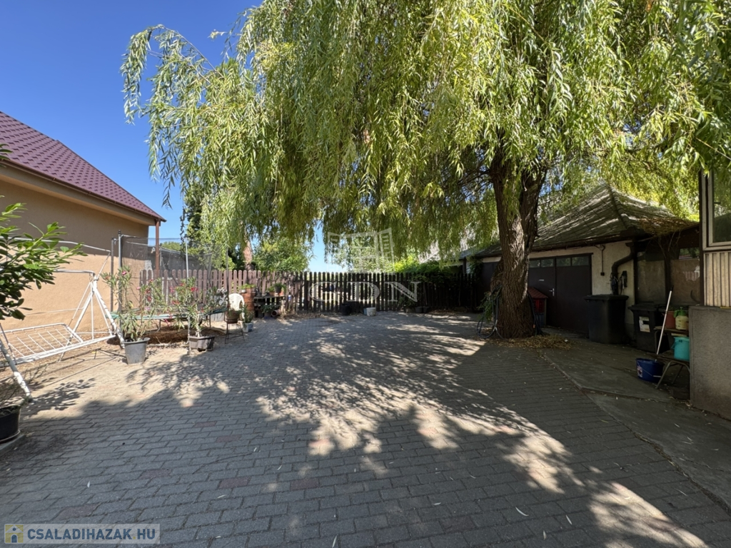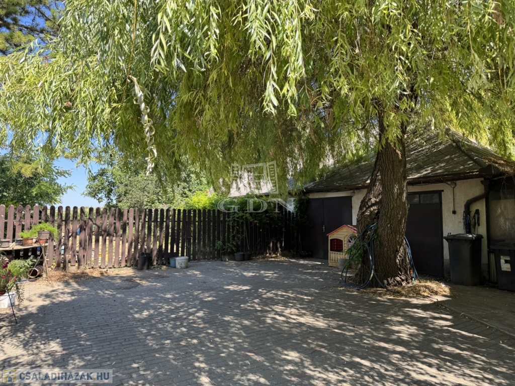A házhoz kapcsolódik egy 36m2-es duplagarázs, egy 27m2-es tároló és egy állattartásra alkalmas melléképület is.