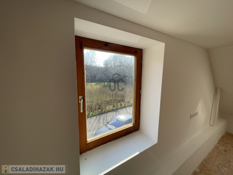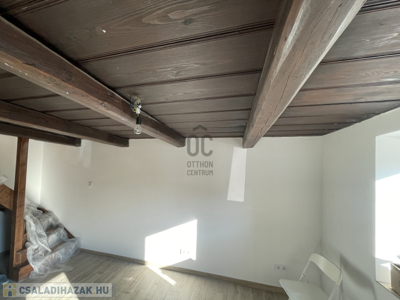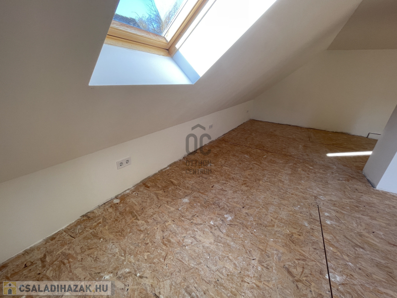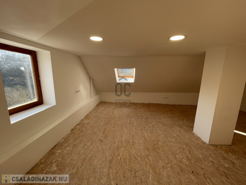 Az emelet egyelőre egyterű, de itt kialakítható két hálószoba is.