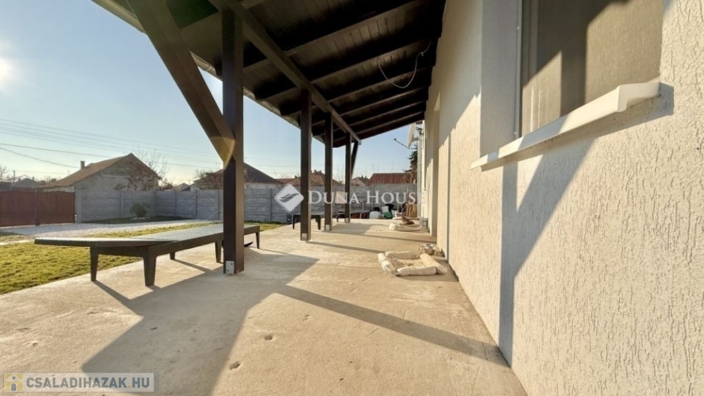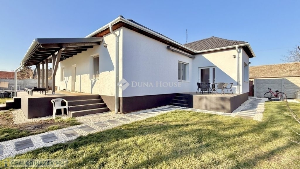 Kiszombor szívében igényesen felújított családi ház eladó! Ide tényleg csak költözni kell. Kiszombor központjában, Szegedtől mindössze 25 percnyi autóútra, Makótól alig pár perc távolságra található, ez a 855 m²-es telken elhelyezkedő 155 m²es frissen felújított családi ház. Ideális választás a város zajából kiköltöző nagycsaládosok vagy család alapítás előtt álló fiatal párok számára!Belépve a bejárati ajtón barátságos, ugyanakkor hatalmas amerikai konyhás nappali fogadja az ide érkezőt, ahonnan fényes folyosón keresztül jutunk el a 4 db külön nyíló hálószobáig. A folyosón található fürdőben kád és zuhanyzási lehetőség is ki lett alakítva. A fürdőszoba mellet kapott helyett egy másik külön álló wc és egy kamra is, ahol az épületet fűtő padlófűtést biztosító kondenzációs kazánt rejtették el a kíváncsiskodó szemek elől. A bejárati ajtón kívül két további lehetőségünk is van kijutni a nagy odafigyeléssel rendben tartott, parkosított udvarra, amit akár két teraszról is csodálhatunk. Az épületet a tulajdonos megbízásából gondosan kiválasztott, minőségi alapanyagokból újították fel 2020 nyarától A tetőszerkezett megerősítették, és a régi cserepeket új, időtálló betoncserepekre cserélték.A ház egésze famintázatú hidegburkolatot kapott. Az alacsony fűtésszámlát a hőszigetelt műanyag nyílászárók és az egész házat körülölelő 10 cm-es szigetelés garantálják. Az épület hűtését nagy teljesítményű, gazdaságos energia felhasználású klíma biztosítja a nyári meleg napokon, ami akár plusz fűtési lehetőség ként is tud funkcionálni a téli időszakban. A környék ellátottsága kiváló, buszmegálló, bevásárlási lehetőség, pékség, bolt és a közelben található játszótér egyben sportolási lehetőséget is biztosít. Pár perces sétával elérhető iskola, óvoda és orvosi rendelő is van a falusi CSOK, CSOK+-ra is alkalmas településen. A közösségi közlekedés sűrű és egészen kiváló környéken.Amennyiben felkeltette az érdeklődését, hívjon bizalommal!