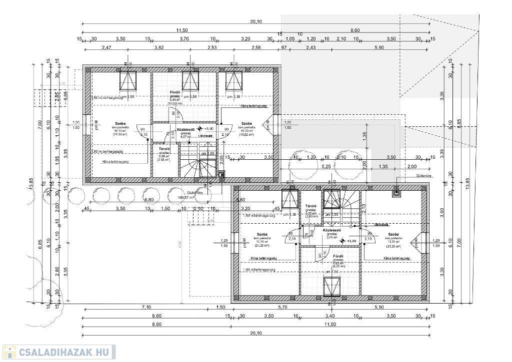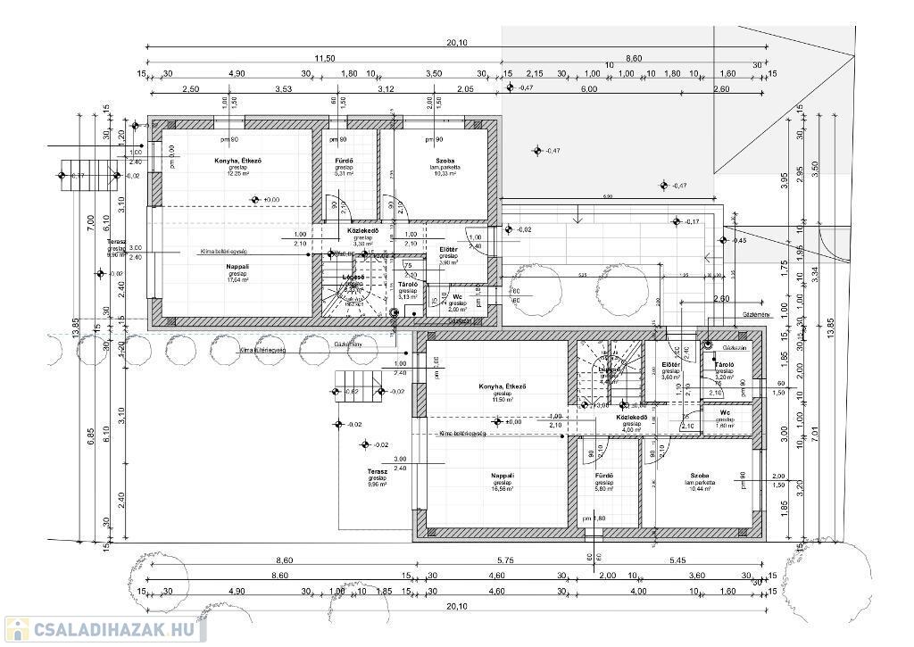 A 637 nm-es összközműves (víz, villany, gáz,csatorna) telken 91 és 94 nm es m2-es, földszintes+ emelet kialakítású 3 szoba + amerikai konyhás- nappalis elrendezésű ikerházak épülnek magas szintű, kulcsrakész kivitelezéssel, 150 nm-es hozzávetőleges saját telekhányaddal.