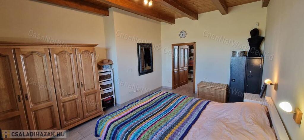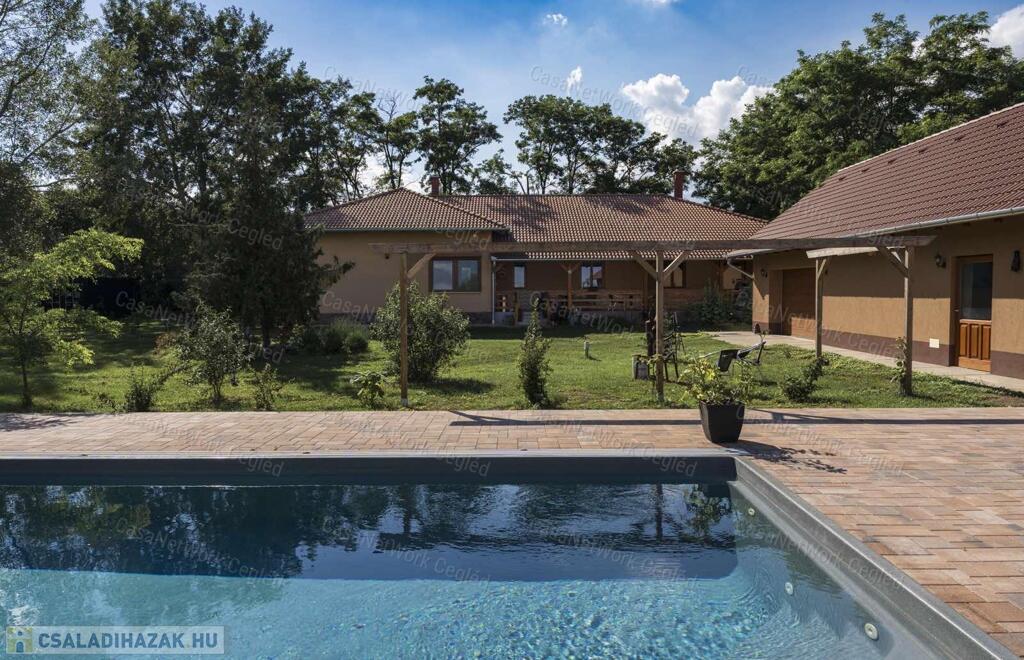 -VENDÉGHÁZ alapterülete: 97,5 nm, hőszigetelt Phorotherm falazattal, cserép borítású tetővel, belmagassága: 2,7 m, 1 szoba (jelenleg műhelyként funkcionál), WC, konyha-nappali elrendezésű. A központi tere eltolható üveg tolórendszerrel ellátott, így ez a tér teljesen nyitottá varázsolható. Fűtése gázcirkó kazánnal, lapradiátorokkal megoldott. A melegvizet villanybojler szolgáltatja. A nappali részében egy bárpult kapott helyet. Az ingatlanban 3 fázis 220 Volt, 32 Amper.