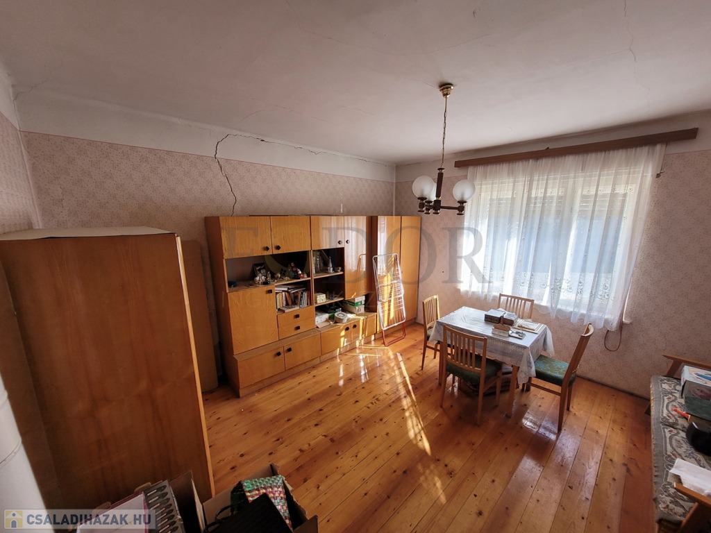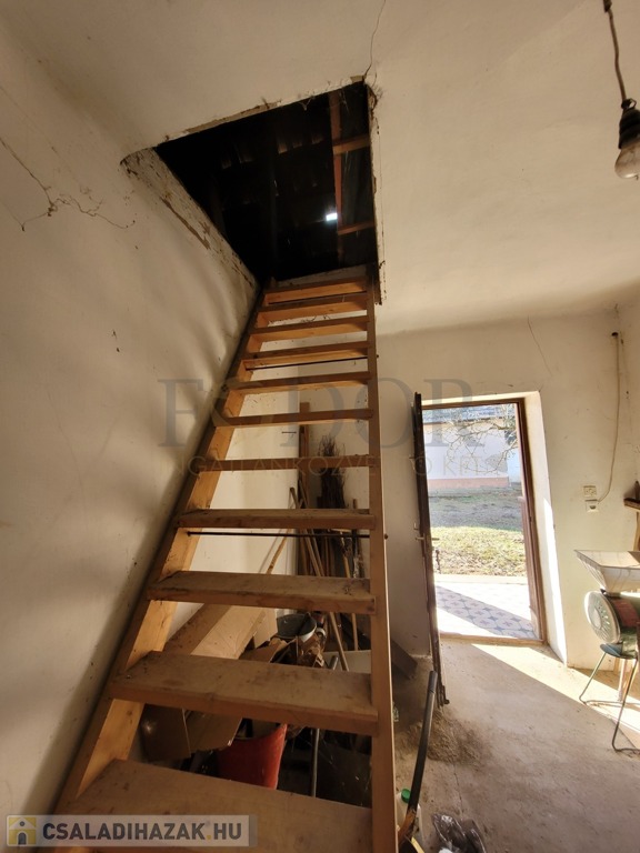 Elosztása a következő: előszoba, 2 db szoba, konyha, kamra, fürdőszoba + wc, padlás.