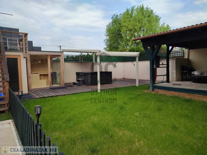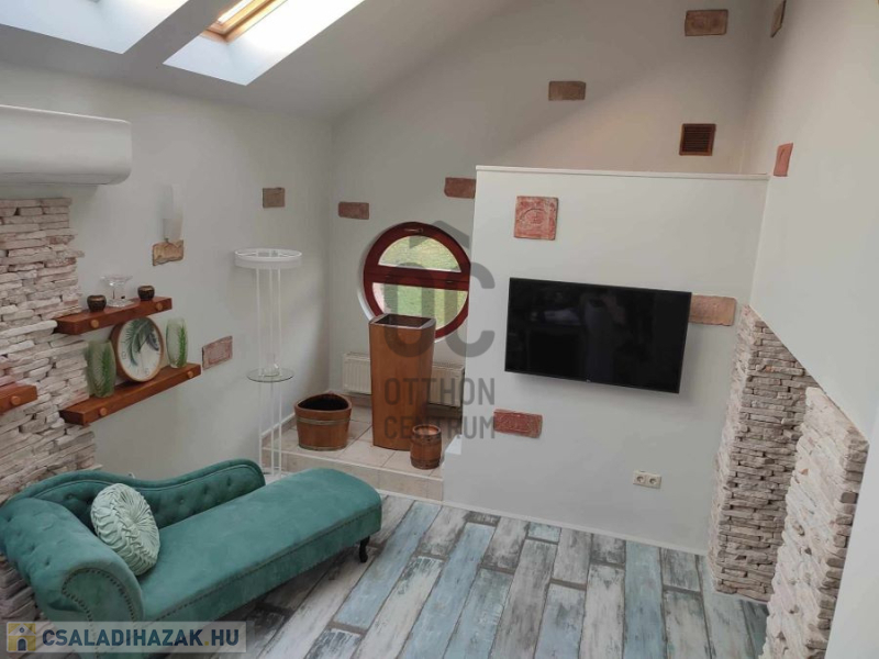 Az ingatlanban 8 szoba, 4 fürdőszoba, továbbá a kertben pagoda, sütögető, valamint kemence nagyméretű szaletliben, jakuzzi, szauna, kerti fürdőház található.