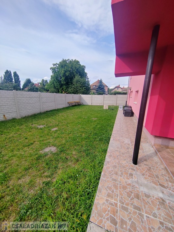 A ház közel 400 nm-es teljesen körbekerített telken helyezkedik el, amelyhez füvesített udvar tartozik valamint több autó számára parkolási lehetőség.