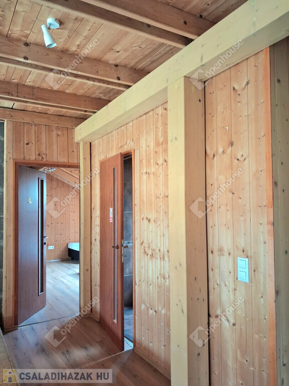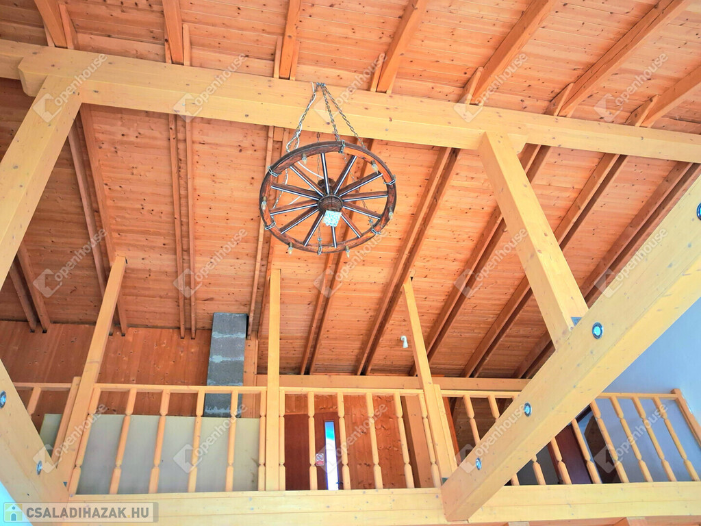 Az egész épületben a fa meleg hangulata dominál. Fölszinten és az emeleten látszó gerendák, a fürdőszobában minőségi burkolat,az egyedi készítésű fa beltéri ajtók, mind melegséget árasztanak.Minden szegletéből a nyugalom, a kényelem és a kifinomultság sugárzik.