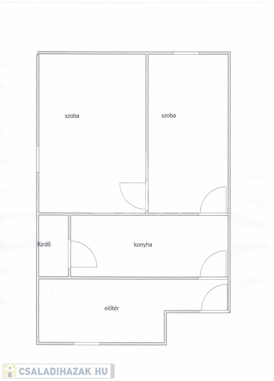 A lakás alapterülete 40 m2, 2 szoba, konyha, fürdő helyiségekből áll.