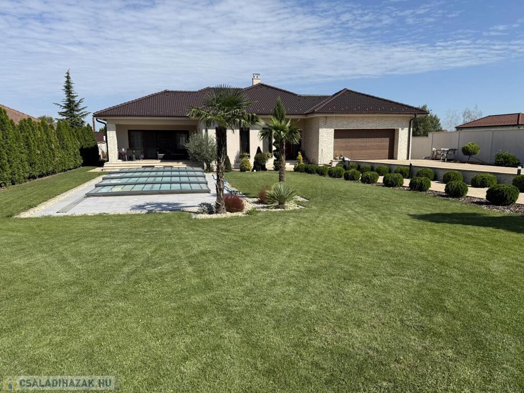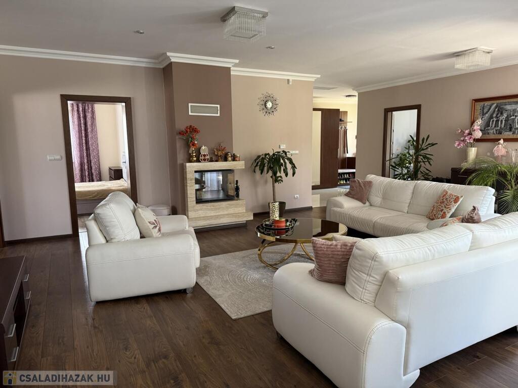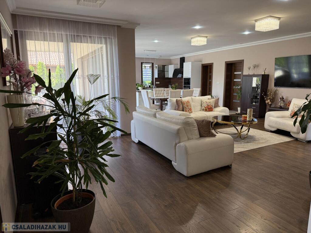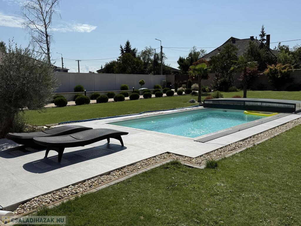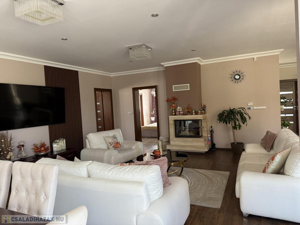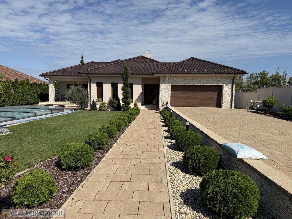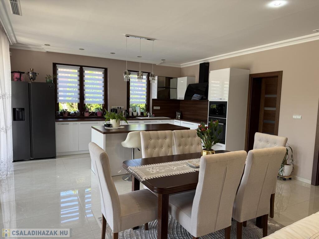 Komárom egyik legkedveltebb, csendes kertvárosi övezetében kínáljuk eladásra ezt a minden részletében tökéletesen megalkotott, 2020-ban épült luxus lakóházat. Az ingatlan egy 1 433 m²-es, gondosan parkosított telken helyezkedik el, és a modern építészet, a természet közelsége, valamint a kompromisszummentes minőség tökéletes harmóniáját képviseli. Ez az otthon nem csupán egy ház, hanem egy életstílus: elegancia, kényelem és privát luxus egyben.