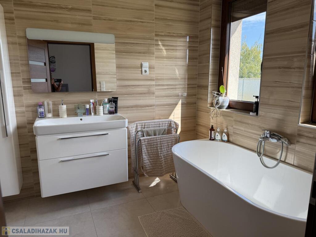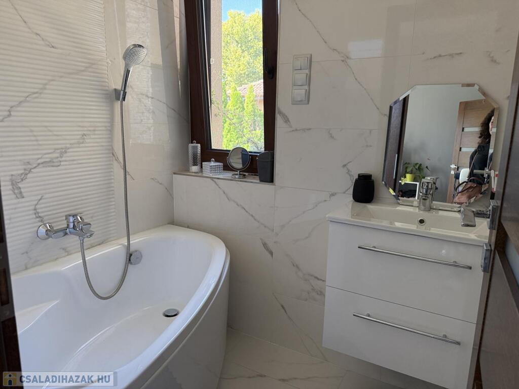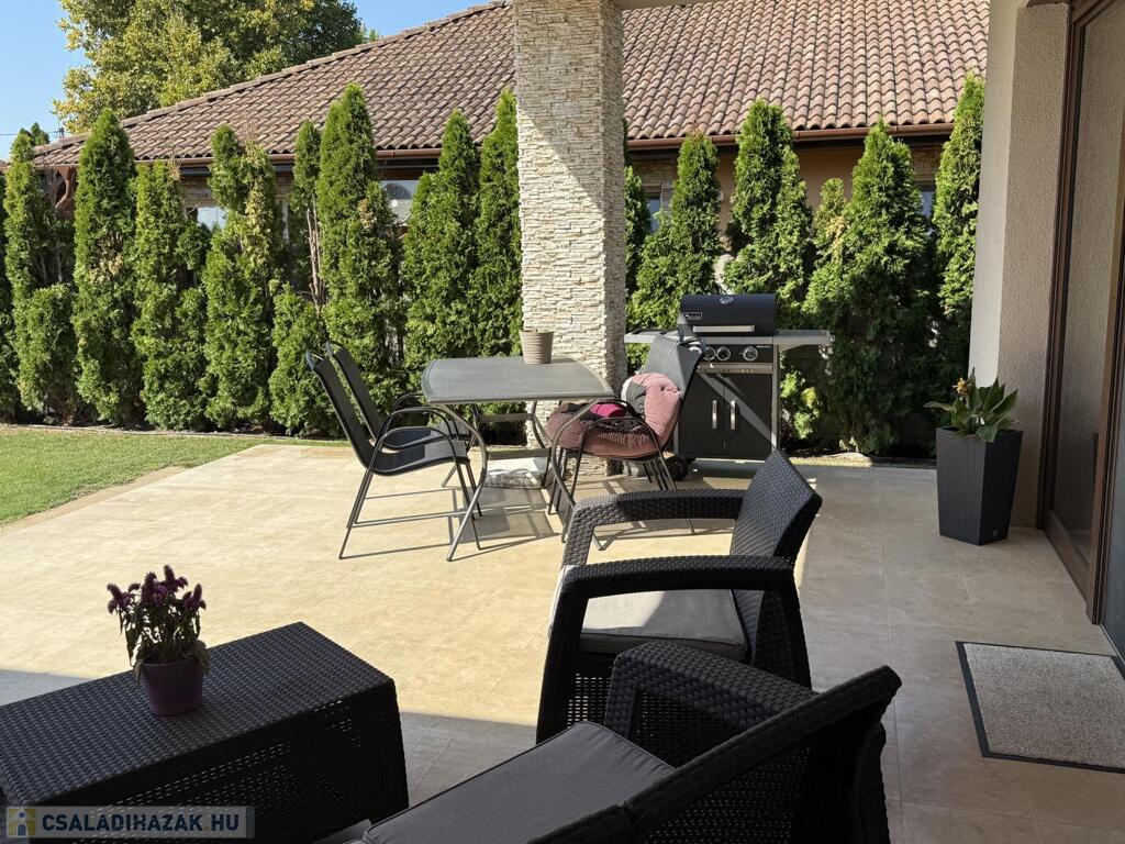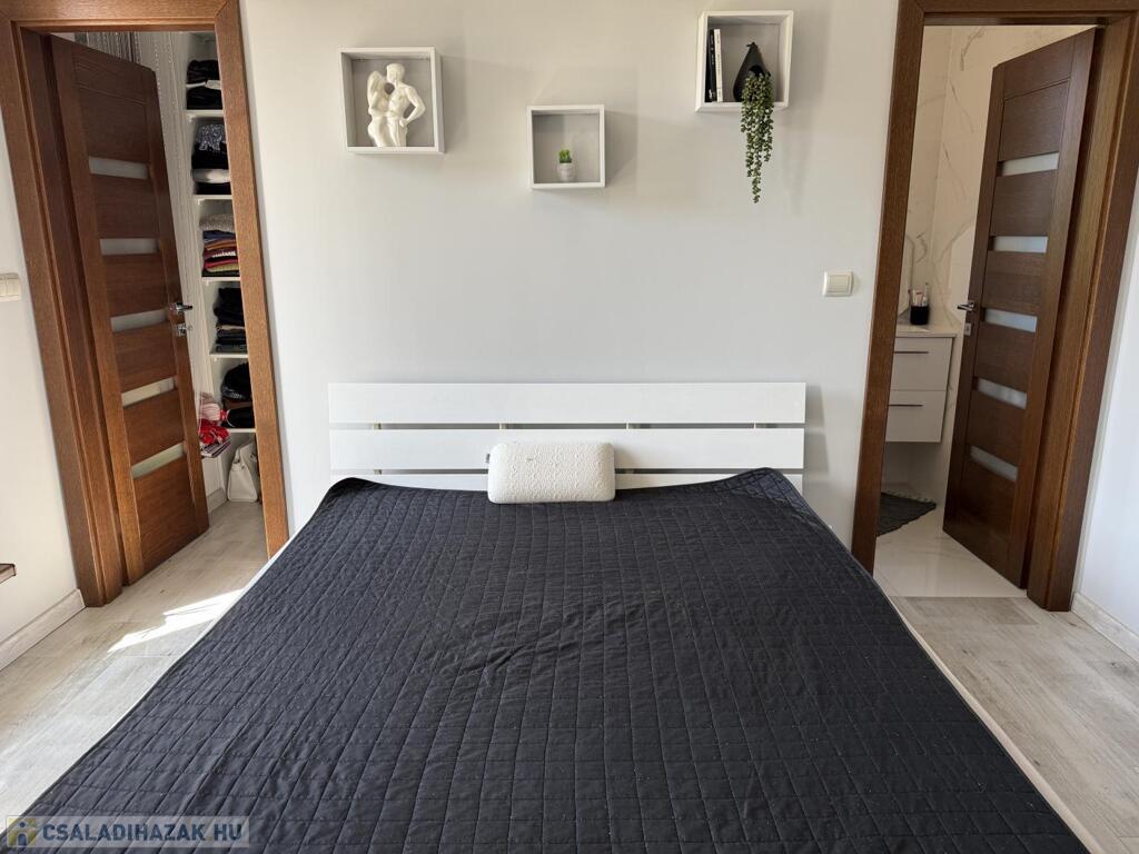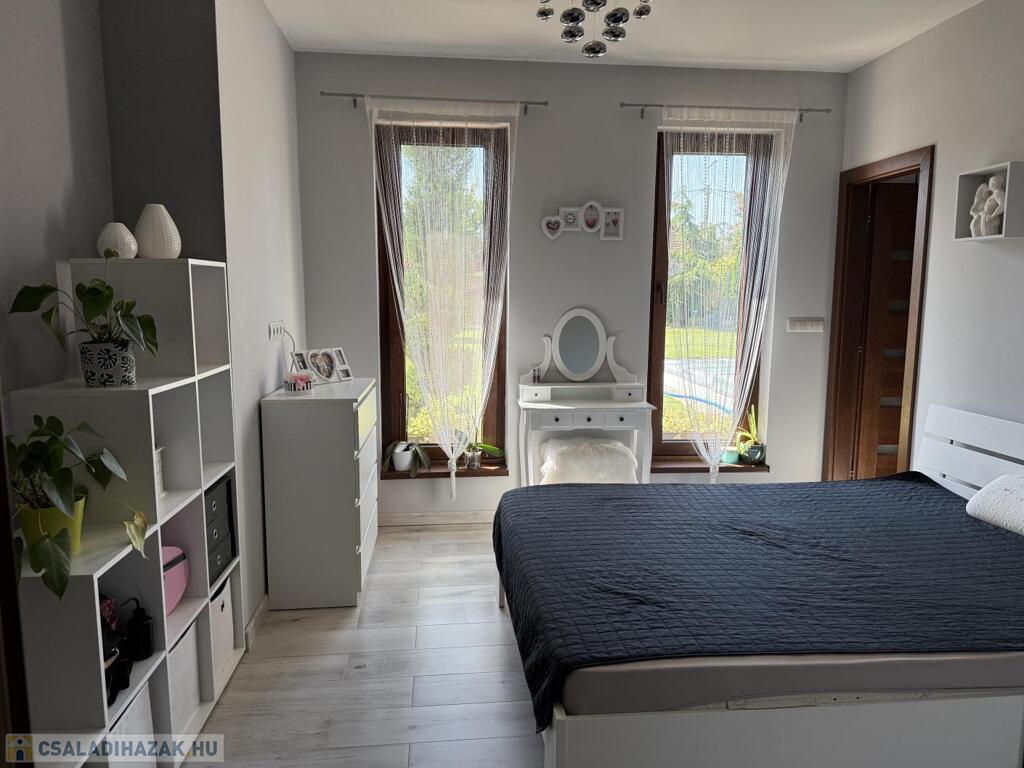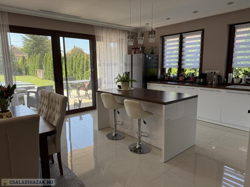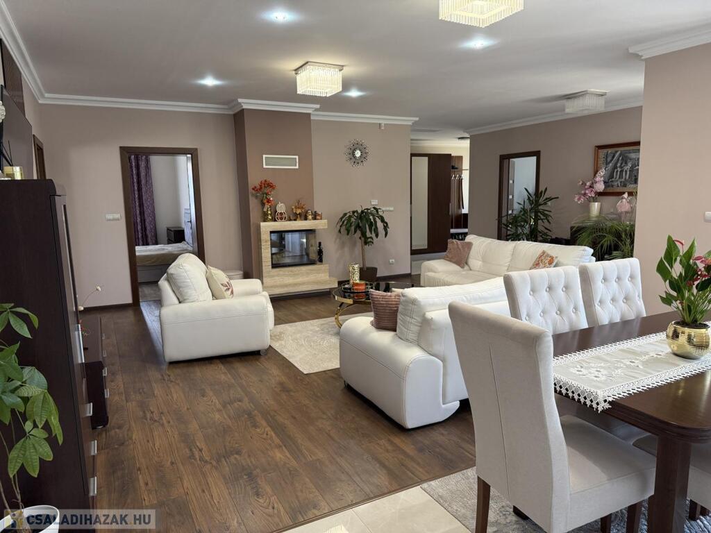 Komárom egyik legkedveltebb, csendes kertvárosi övezetében kínáljuk eladásra ezt a minden részletében tökéletesen megalkotott, 2020-ban épült luxus lakóházat. Az ingatlan egy 1 433 m²-es, gondosan parkosított telken helyezkedik el, és a modern építészet, a természet közelsége, valamint a kompromisszummentes minőség tökéletes harmóniáját képviseli. Ez az otthon nem csupán egy ház, hanem egy életstílus: elegancia, kényelem és privát luxus egyben.